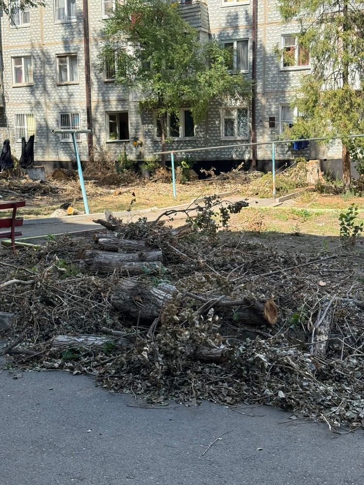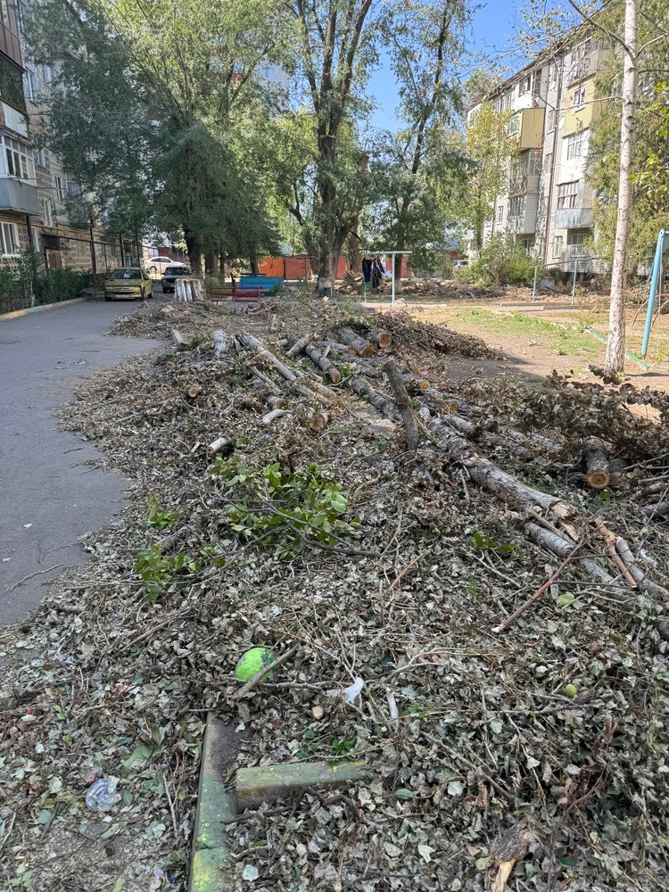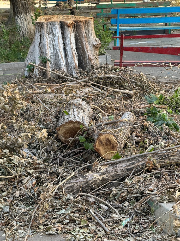 Антисанитария и хаос в Черкесске: после спила деревьев двор превратился в свалку, дети получают травмы