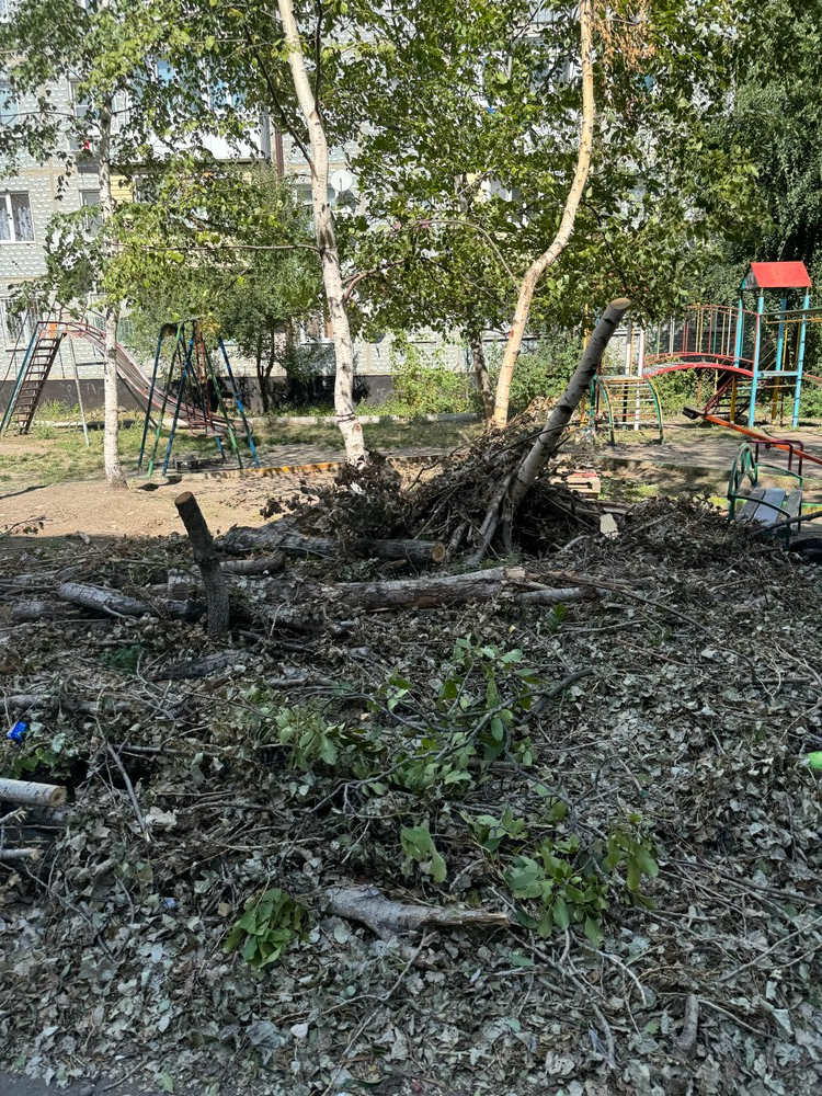 15.09.2024 г., Карачаево-Черкесская Республика, г. Черкесск, ул. Партизанская д. 91-А, после спила деревьев уже две недели не производится вывоз мусора, веток. Дети не могут играть во дворе, получают травмы. Антисанитария и хаос. Управляющая компания и администрация города не принимает ни каких мер. Просьба принять меры и повлиять на ответственных за вывоз мусора.