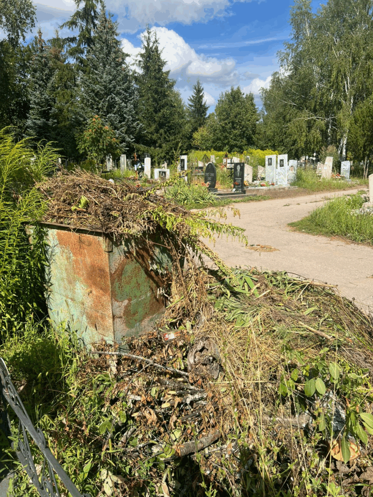 Обращаюсь к вам с большой просьбой и, честно говоря, с недоумением. На кладбище сложилась крайне неприятная ситуация с мусором. Все урны переполнены, мусор буквально вываливается из них. Более того, контейнер с отходами установлен прямо напротив одной из могил, что делает подход к ней практически невозможным и выглядит крайне неуважительно.