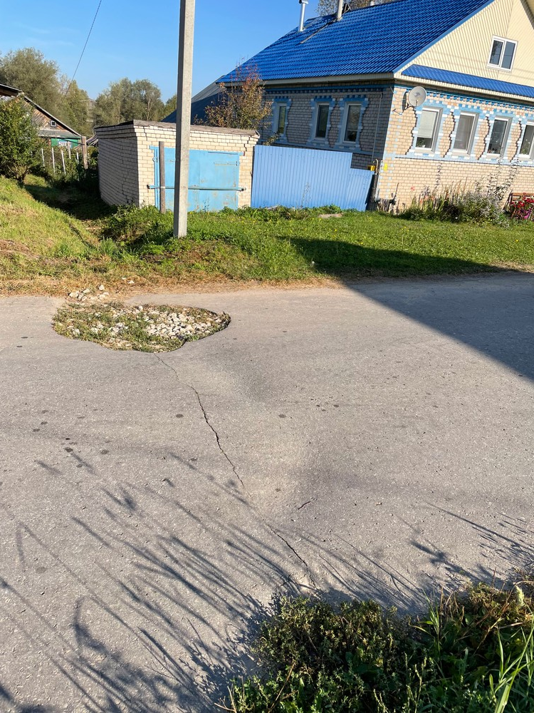 Семёновский ГО, деревня Зименки, улица Центральная, д. 12. Весной 2024 года провалилась дренажная труба, засыпали яму щебнем и на этом всё, асфальт продолжает проседать. На асфальтирование с жителей собирали по 5000 рублей с дома, администрация на контакт не идет. Будущей весной асфальт провалится окончательно. Просим помощи.