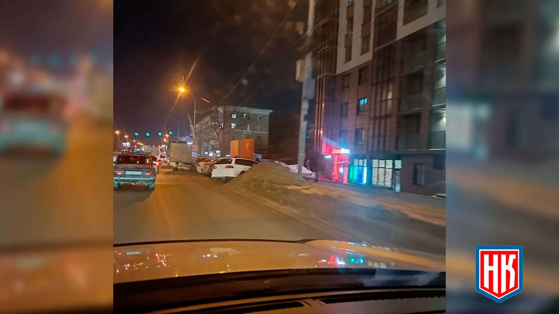 Поступило обращение через мобильное приложение. Большевистская 32/1. Парковочные карманы завалены снегом, остановиться совершенно негде. Перекрыли снегом…