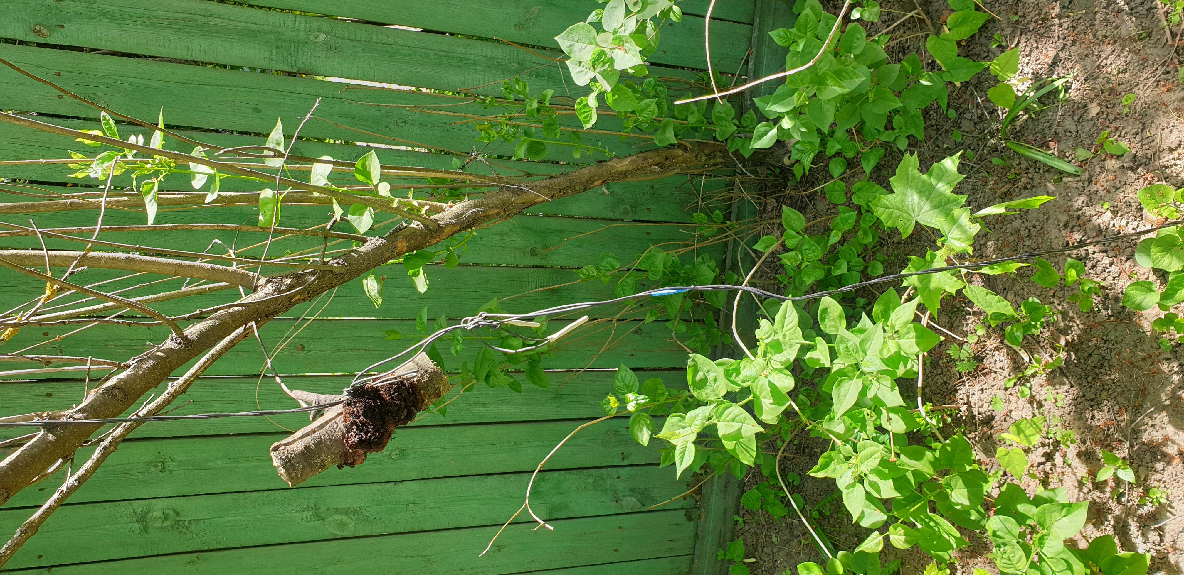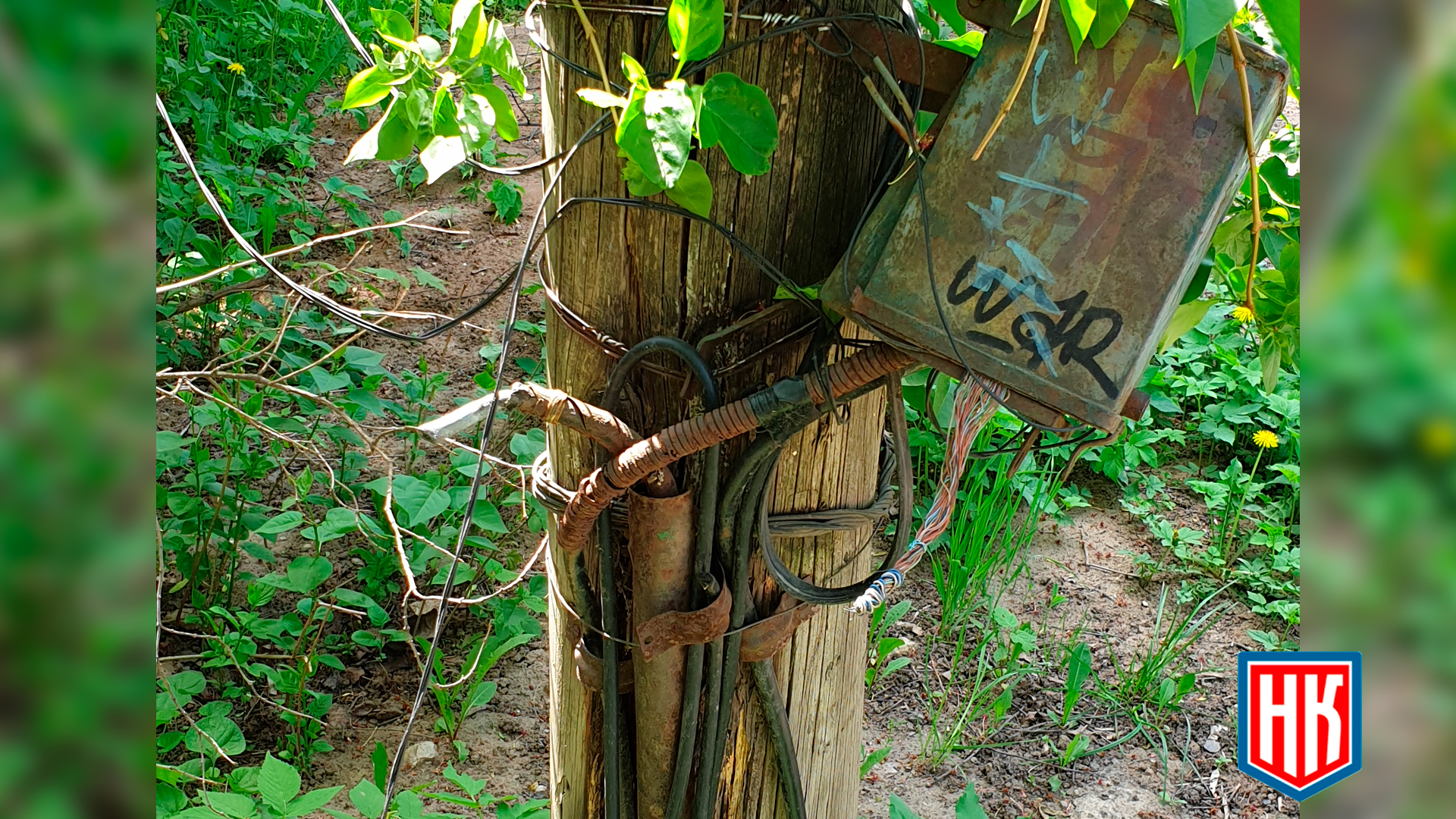 Аварийный столб и оборванные провода на ул. Полевой в Королёве
