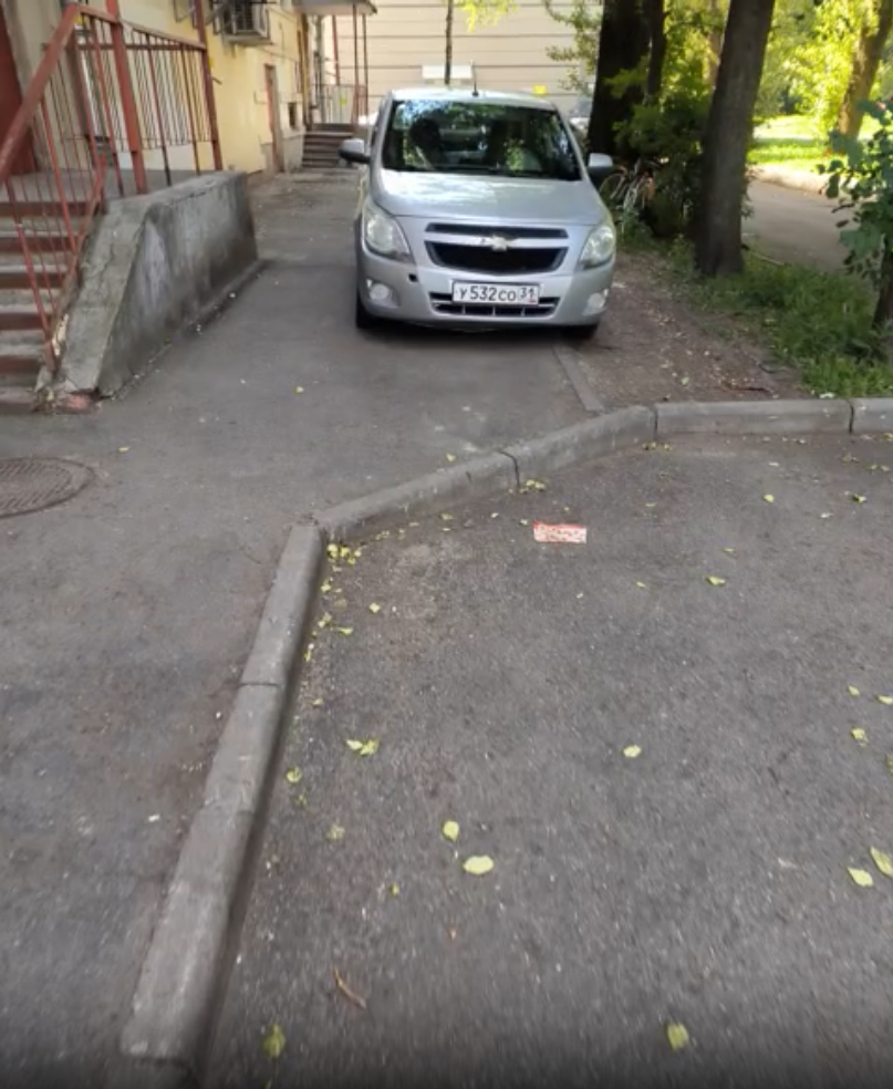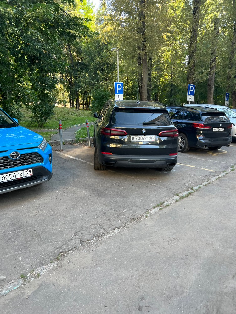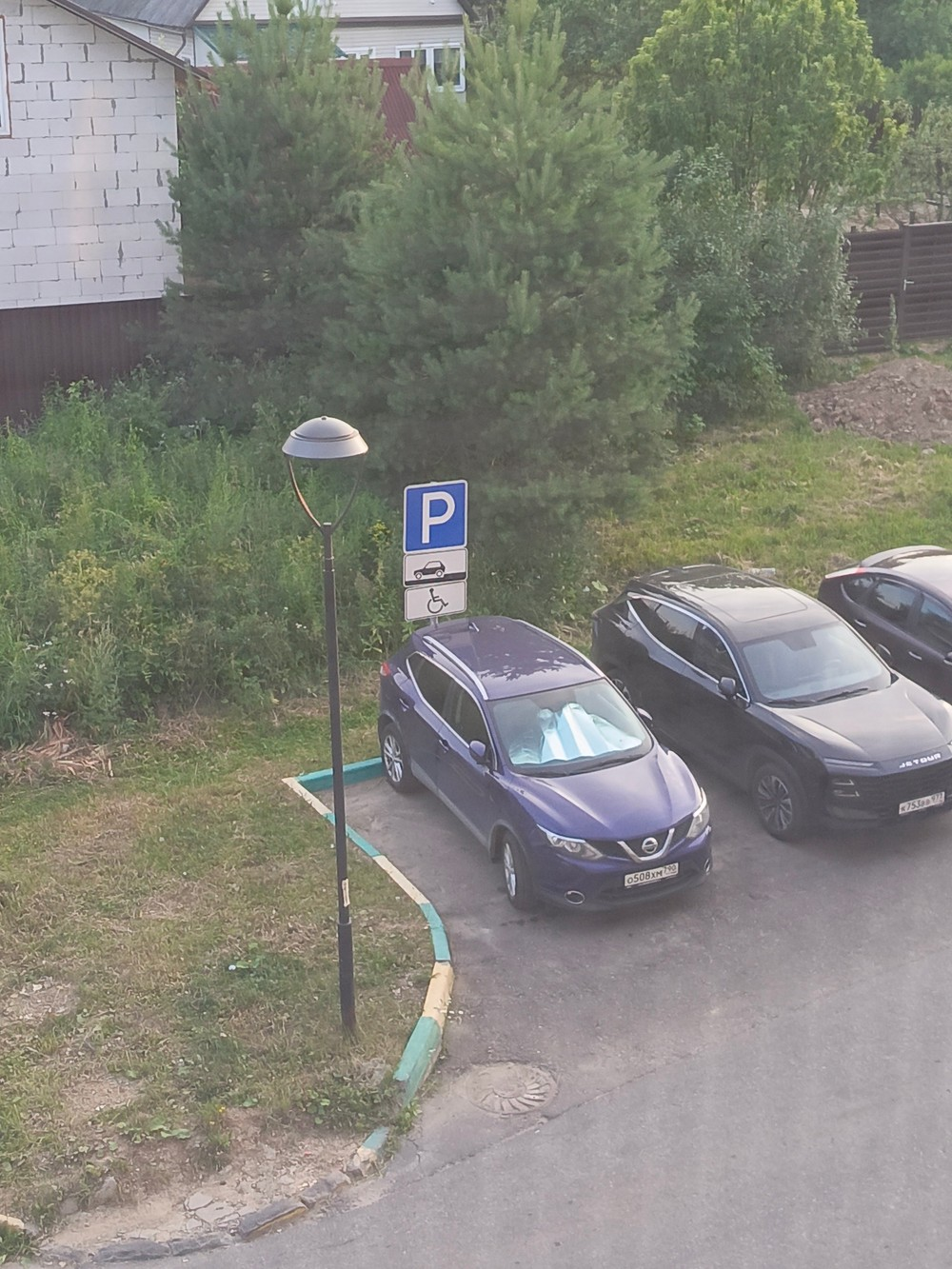 01.07.2024. Московская область, Красногорский район, рабочий посёлок Нахабино, улица Покровская дом 8. Парковка на инвалидном месте.