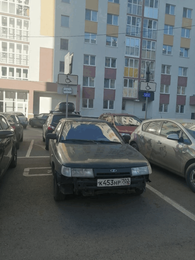 01.07.2024, 7 часов 10 минут, г. Москва, ул. Крупской д. 14, стоянка за домом, дворовая территория. Место стоянки для автомобилей инвалидов, автомобиль, припаркованный на стоянке не имеет знака инвалид, информация в реестре не значится. Вокруг достаточно мест для стоянки, но данный автовладелец занял инвалидное место, видимо считая, что частично заехать на инвалидное место можно.