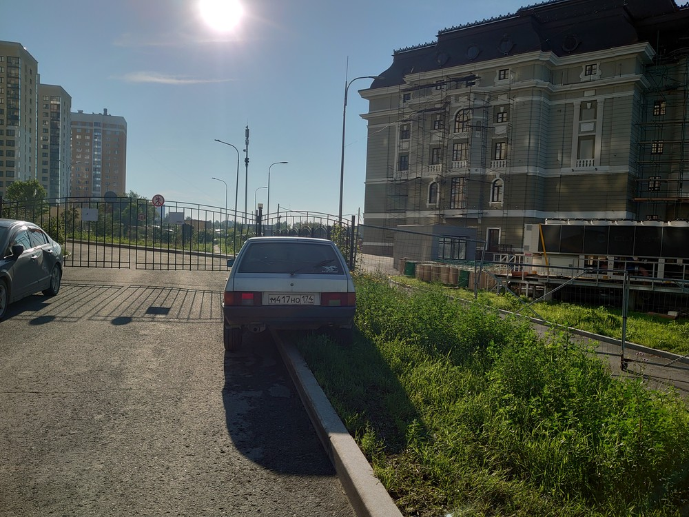01.08.2024 г. 7-55, г. Верхняя Пышма, улица Александра Козицына дом 8, парковка на газоне.