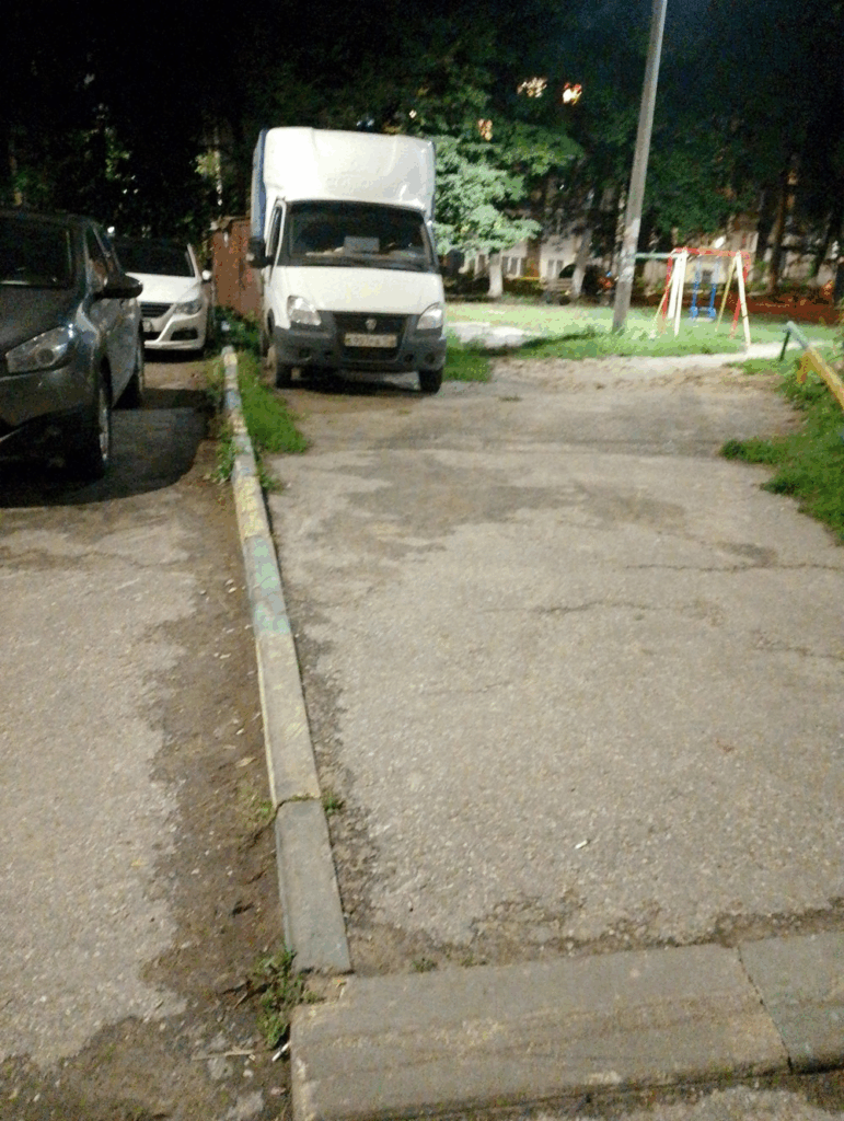 Г. Казань 01.08.2024 6.55 Карбышева 43 стоянка на тротуаре запрещена.