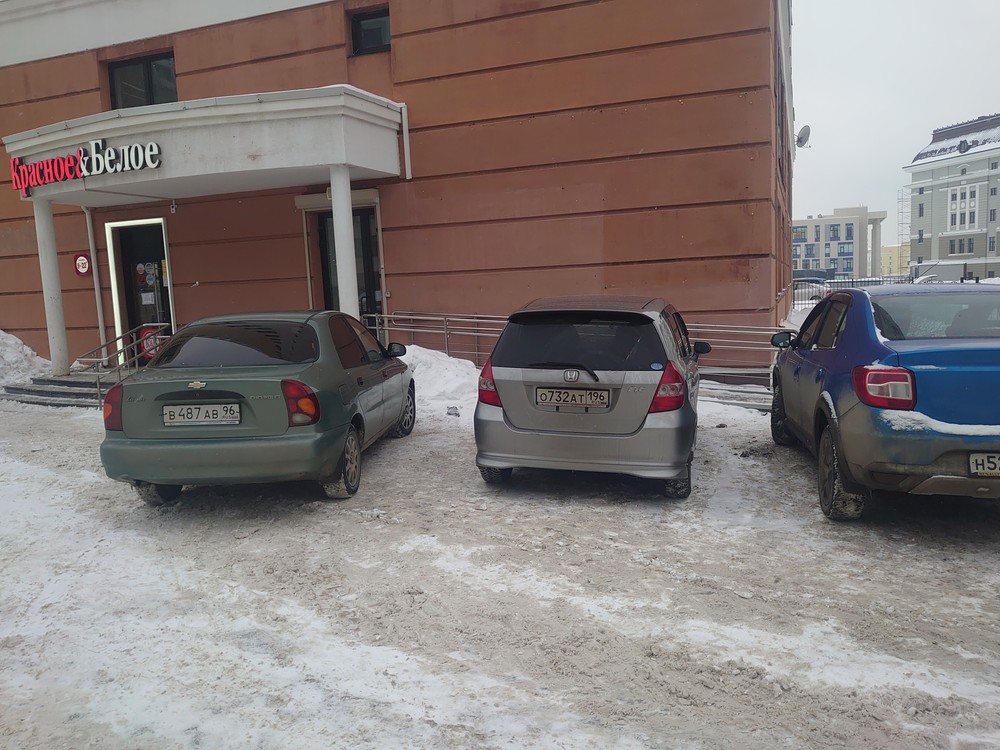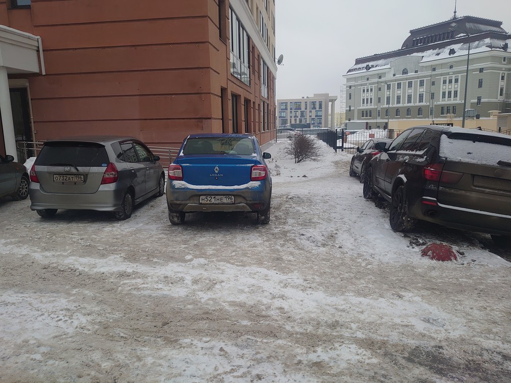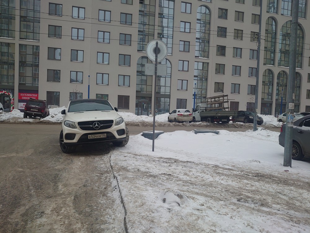 02.02.2024 г. Екатеринбург ул. Краснолесья 10/3 Парковка на тротуаре и пешеходной зоне.