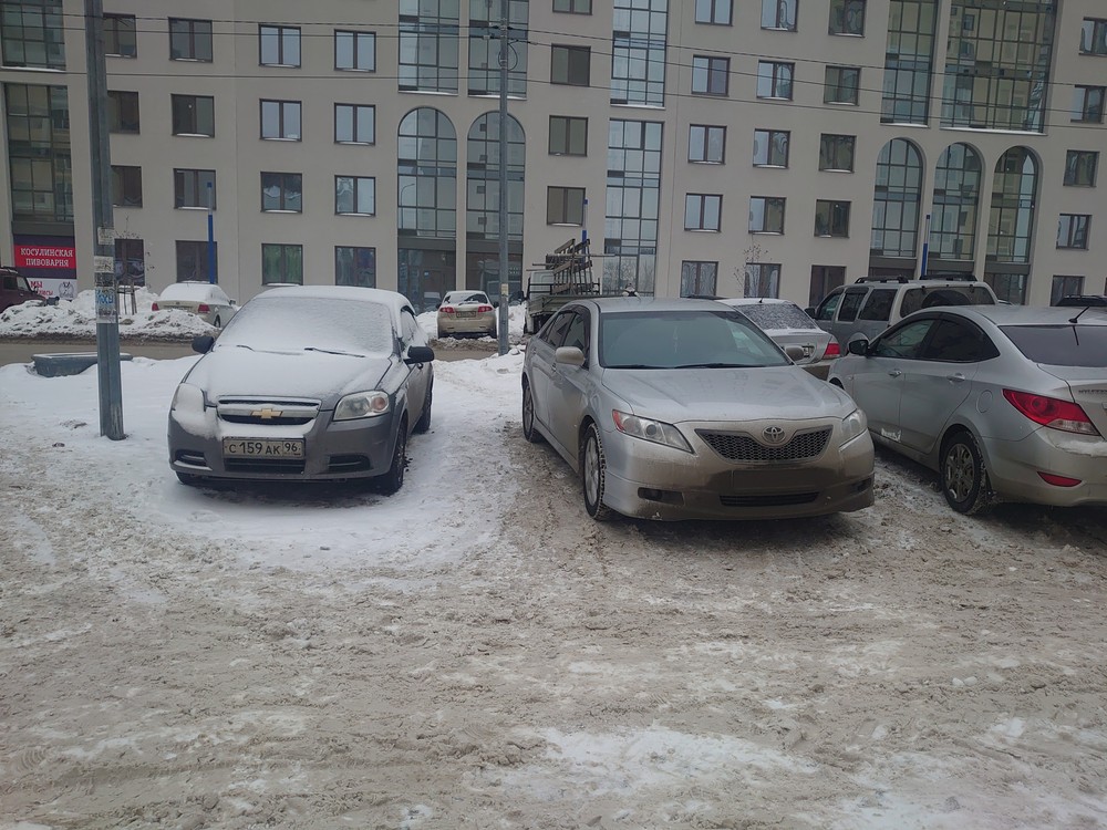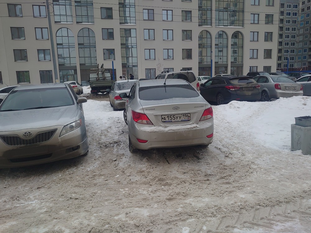 15:54, г. Верхняя Пышма, улица Александра Козицына 8 и 10 дома, парковка на газонах и тротуарах.
