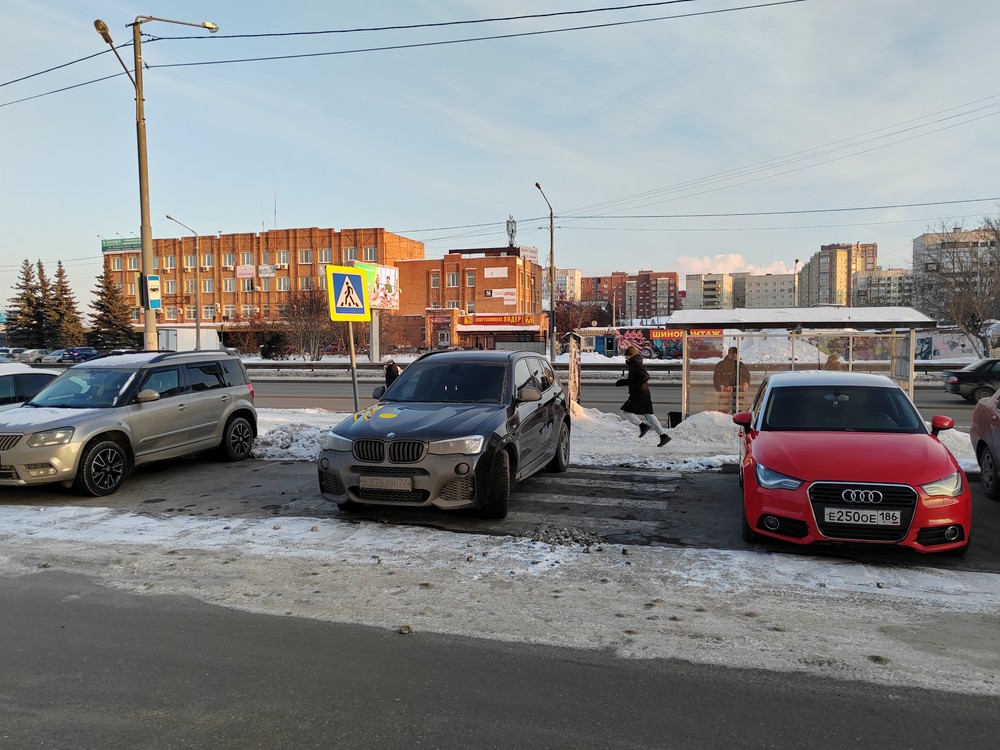 Тюмень, ул. Мельникайте 116/1. Парковка на пешеходном переходе.