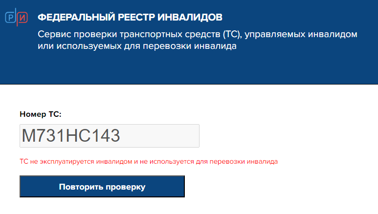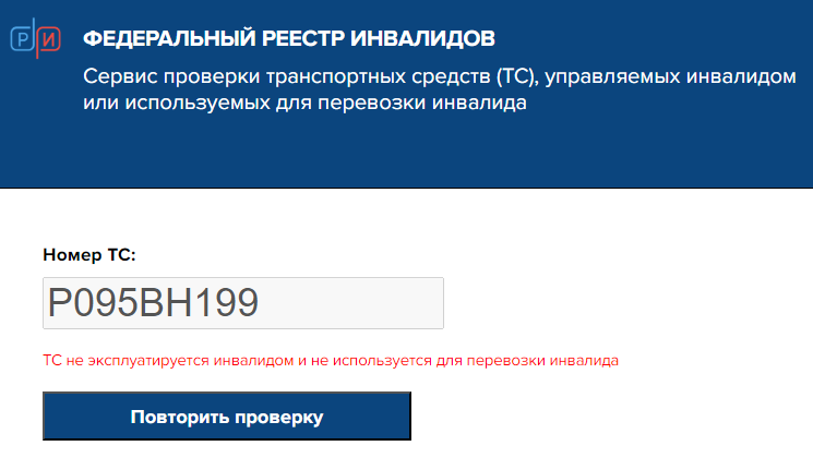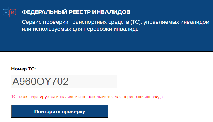 Данные авто проверены и в реестре транспортных средств, управляемых инвалидом или используемых для перевозки инвалида, не найдено.