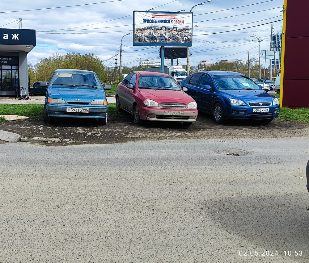 02.05.2024г. 10:53, г. Екатеринбург, пр. Космонавтов, 17д. Массовая парковка автомобилей на газоне.