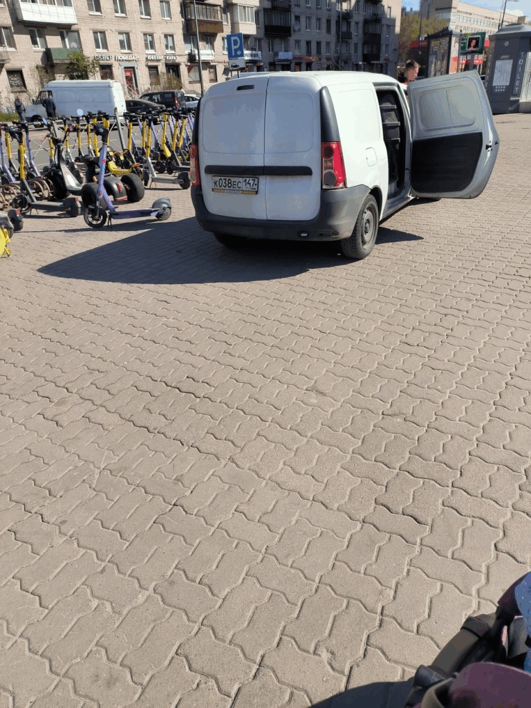 02.05.2024. Санкт-Петербург, улица Ленсовета 70, стоянка на тротуаре.