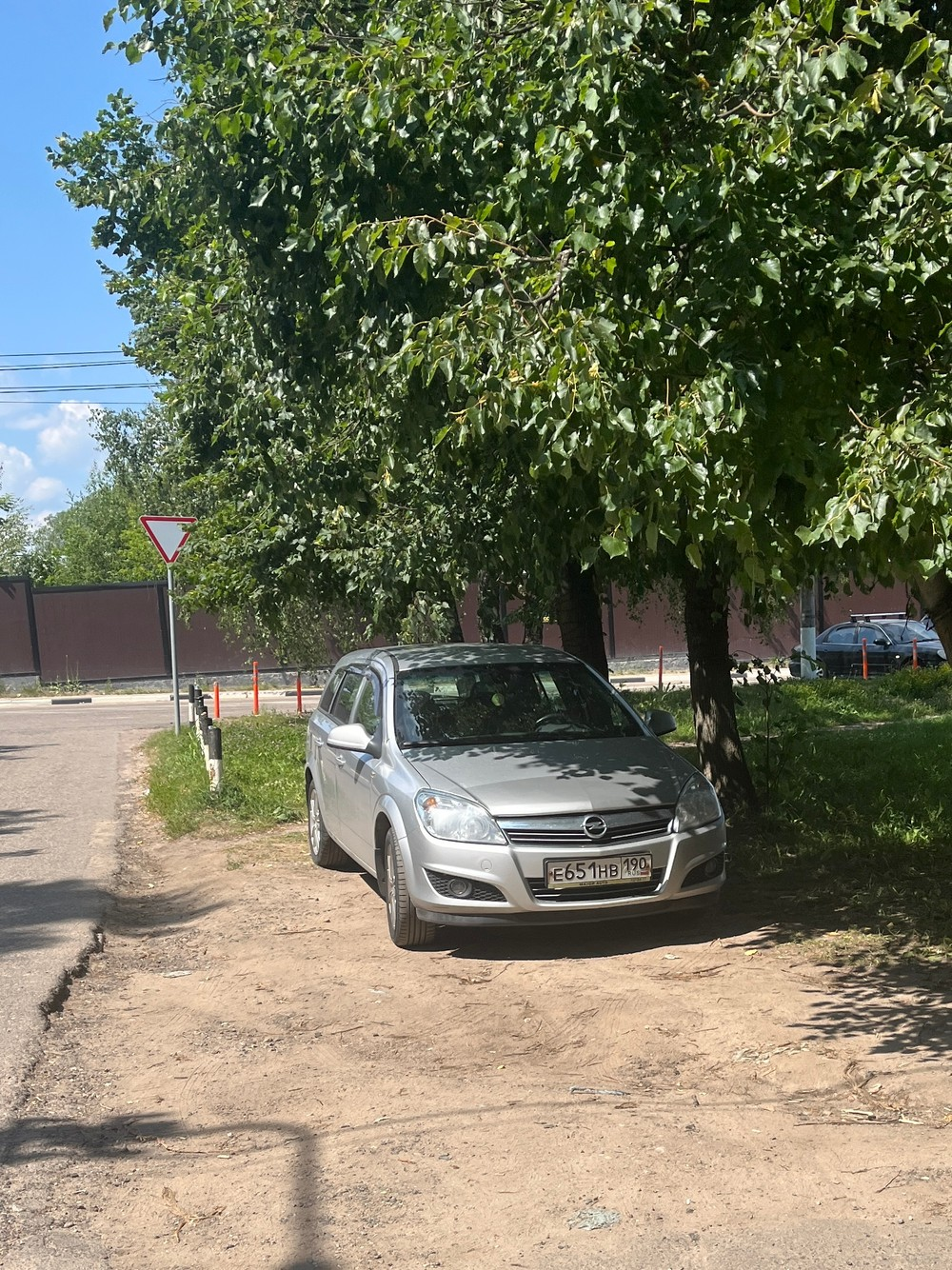 02 июля 2024 год. Московская область, город Солнечногорск, микрорайон Рекинцо. Парковка на газоне при въезде на территорию Солнечногорской больницы.