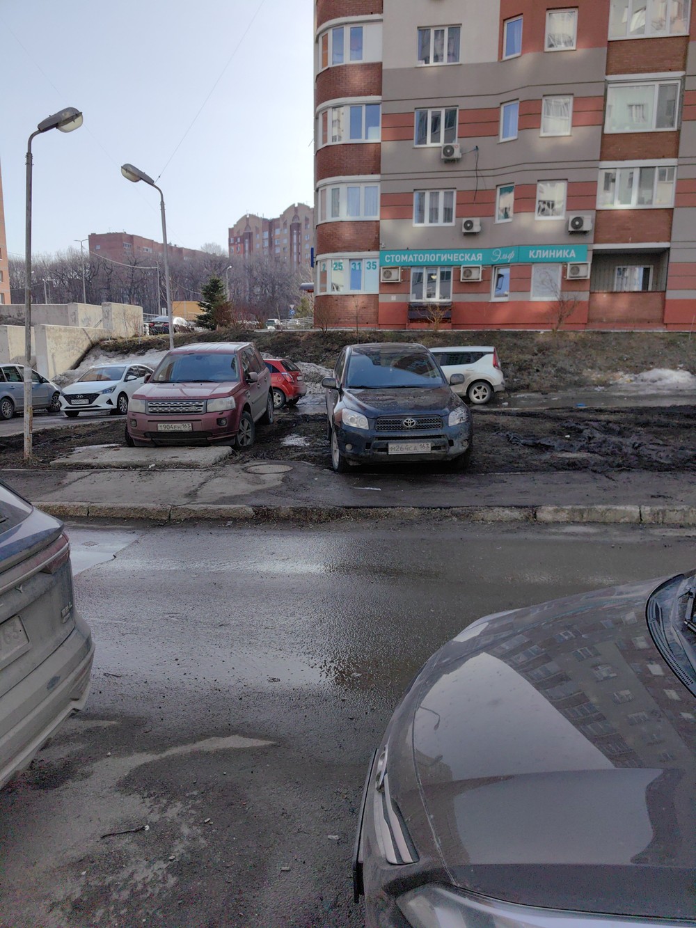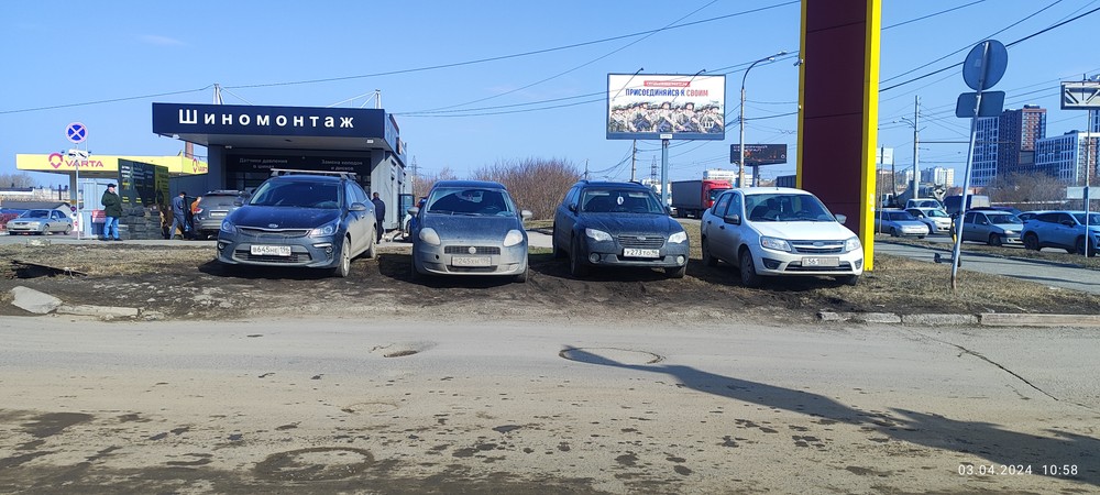 03.04.2024г. 10:58. Екатеринбург, пр. Космонавтов 17д. Массовая парковка автомобилей на газоне.