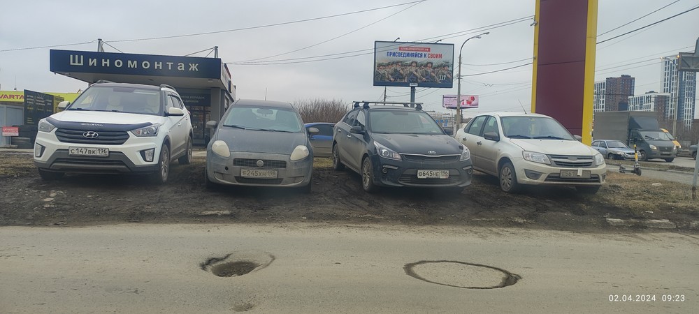02.04.2024г. 09:23. г. Екатеринбург, пр. Космонавтов 17д. Массовая парковка автомобилей на газоне.
