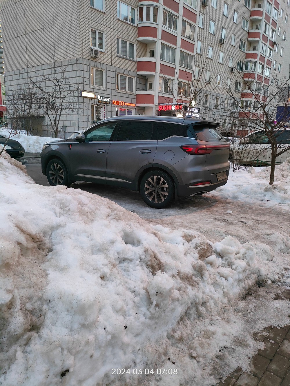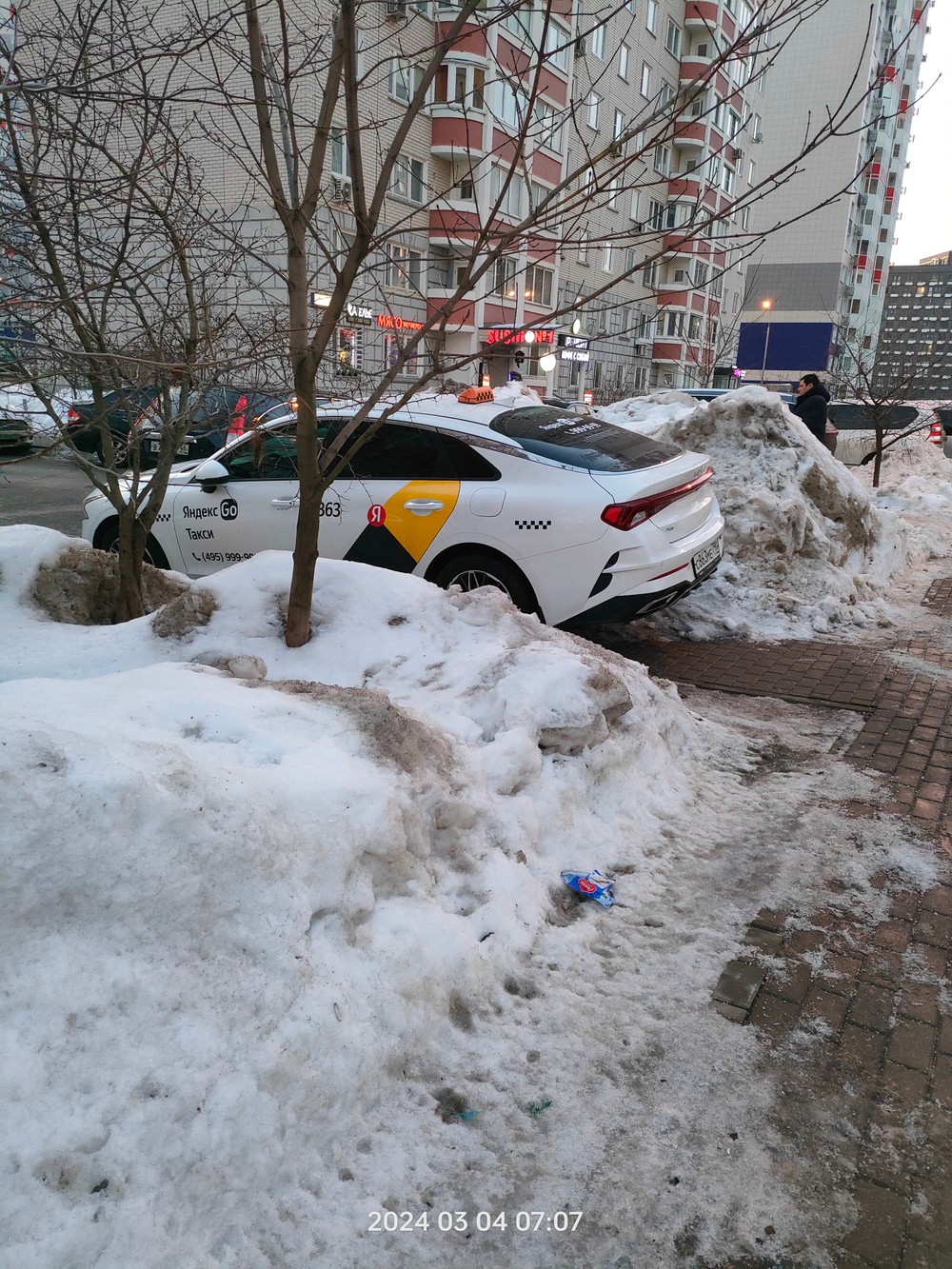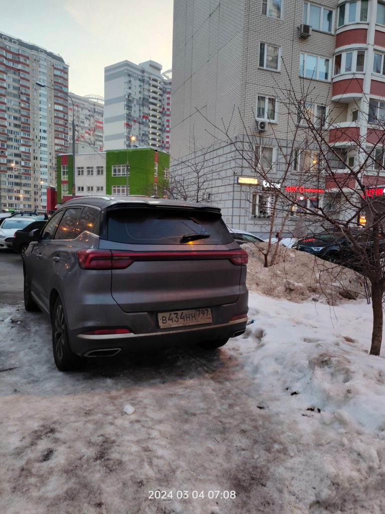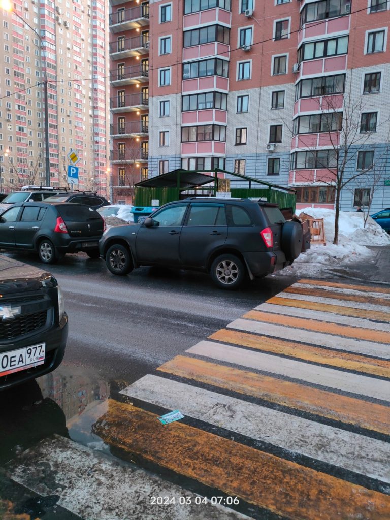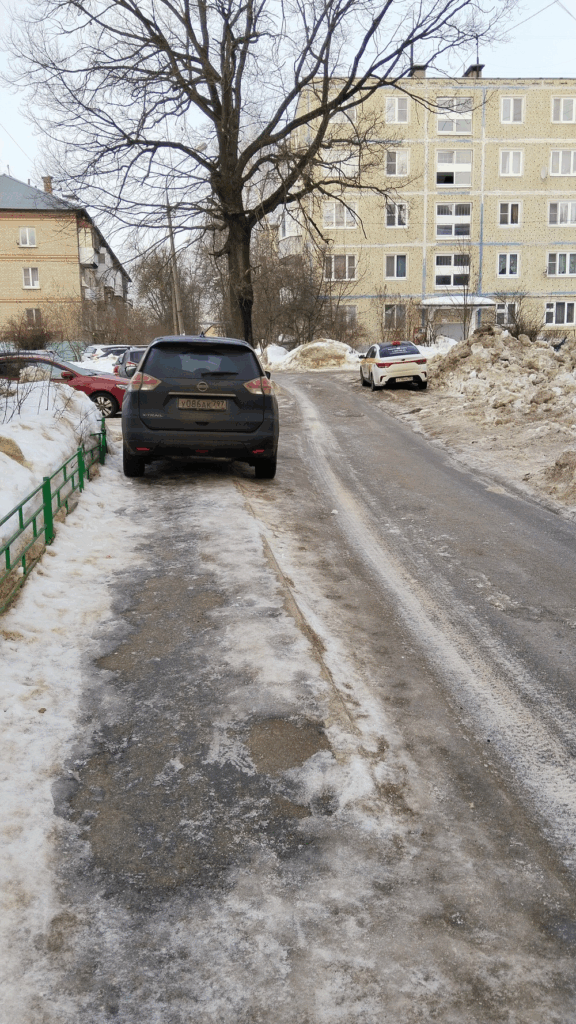 04.03.2024 в 07:08. Московская область, Красногорский район, Путилково, Спасо-Тушинский бульвар дом 7 и 70тия Победы дом 2 (внешняя сторона, тротуар) Парковка на газоне, тротуаре. Пешеходам негде ходить В434НН797.