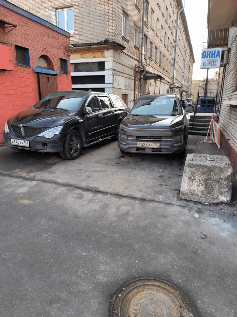 4.03.2024. 19:40, г. Балашиха, мкр. Кучино, Брагина 5. Машины стоят на тротуаре