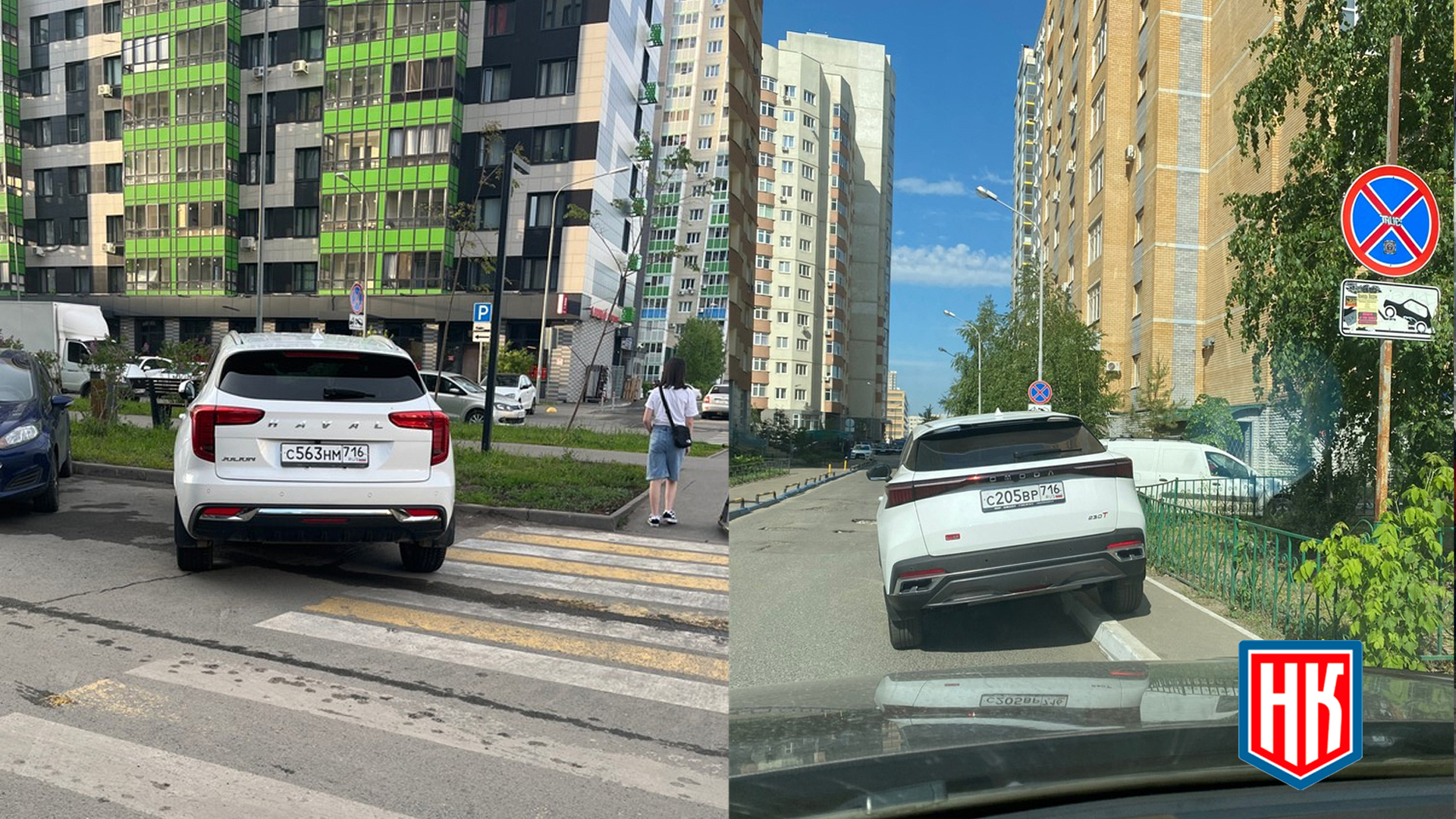 04.06.2024, г. Казань, ул. Курынова 10к 1, парковка на пешеходном переходе.
