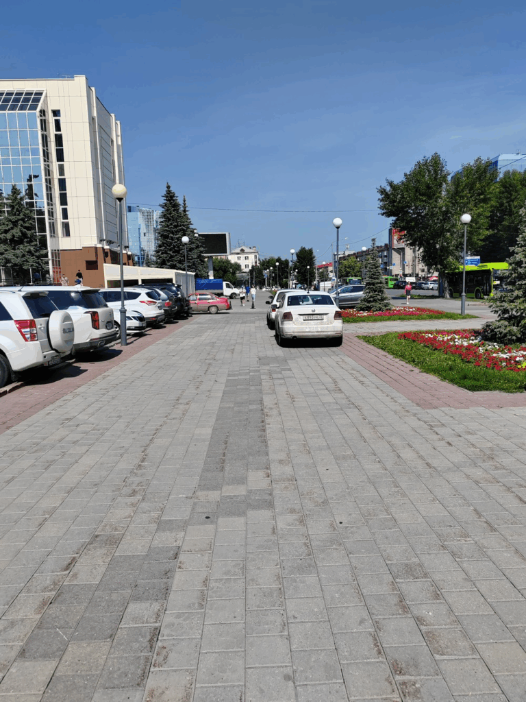 04.07.24г., г. Тюмень, ул. Республики, д. 142. Парковка автотранспорта на тротуаре.