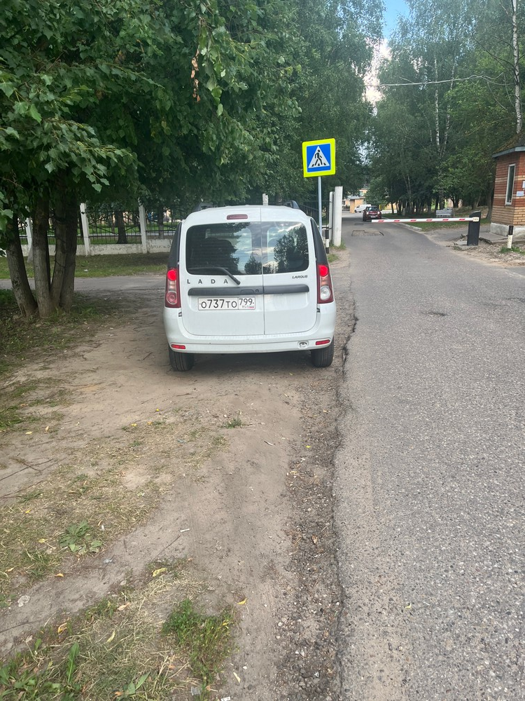 03 июля 2024 год, 17:28. Московская область, город Солнечногорск, микрорайон Рекинцо. Парковка на газоне при въезде на территорию Солнечногорской больницы.