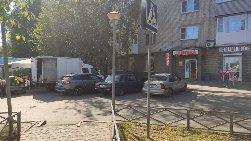 04 сентября 2024 год. 13 ч 05 мин. Московская область, город Солнечногорск, микрорайон Рекинцо. Парковка на газоне при въезде на территорию Солнечногорской больницы.