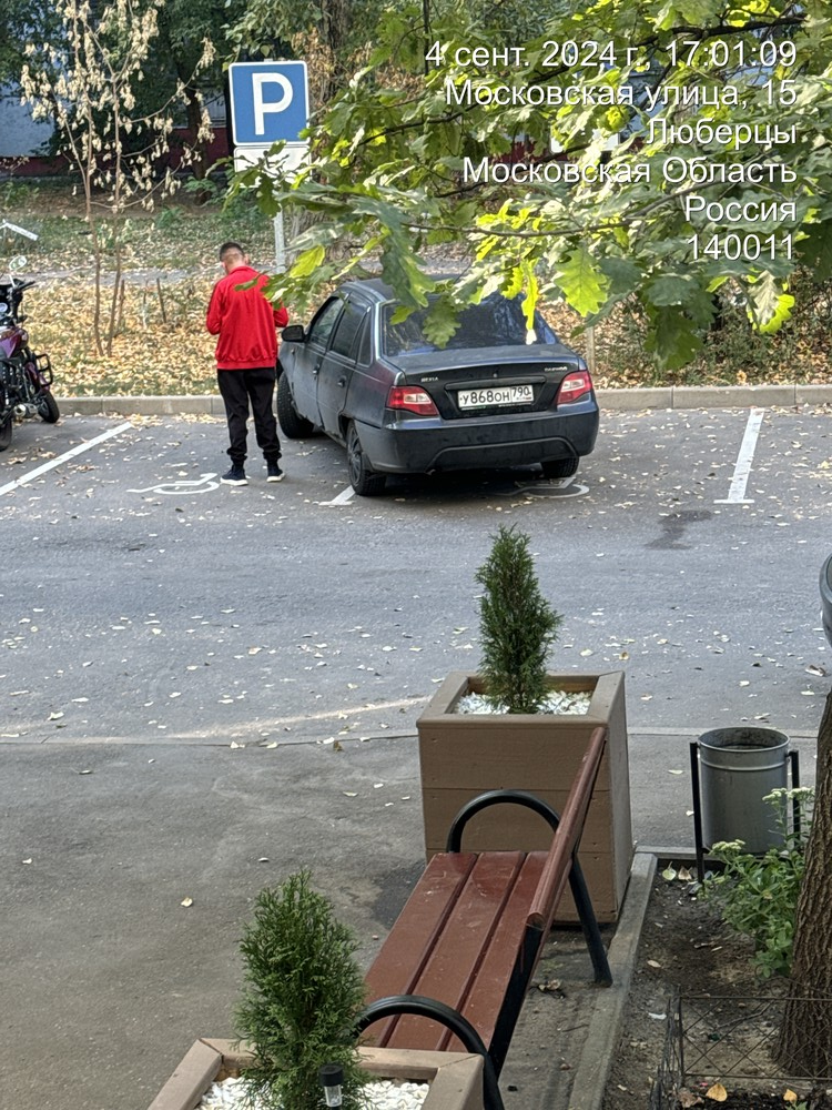04.09.2024 года. Г. Люберцы, ул. Московская 15. Нарушение правил остановки или стоянки в местах, отведенных для остановки или стоянки транспортных средств инвалидов.