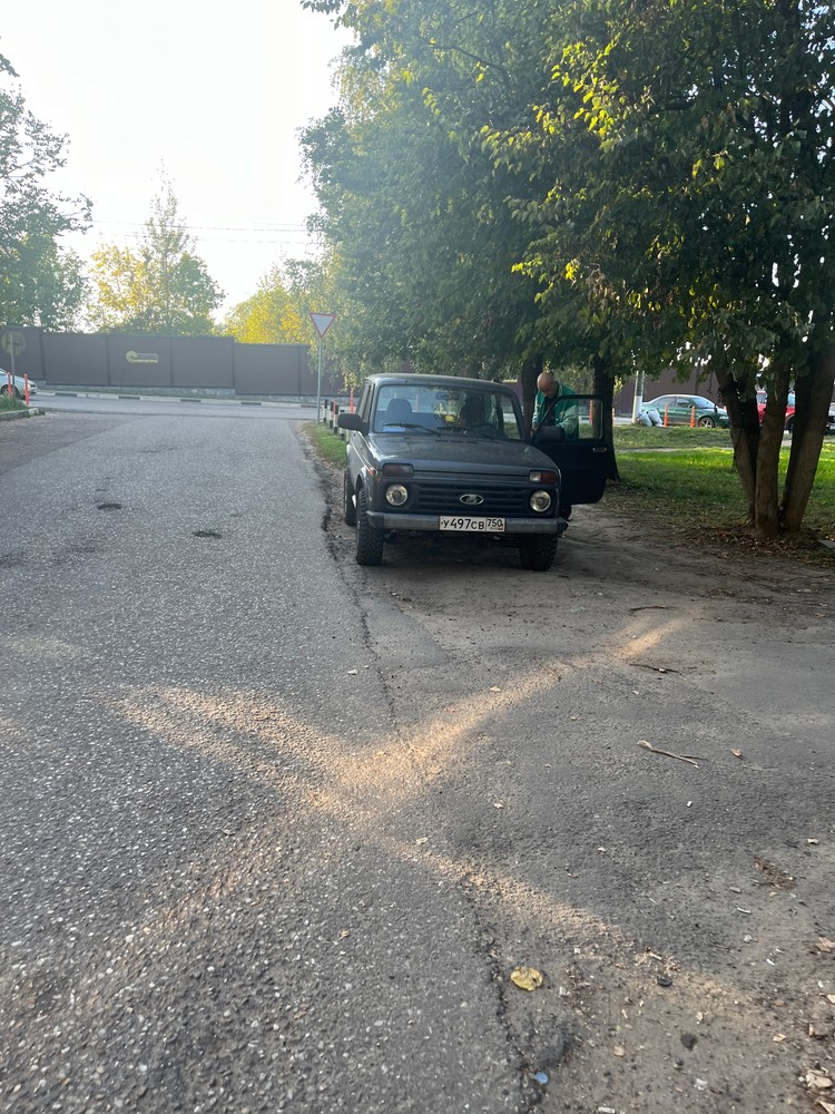 04 сентября 2024 год. 17 ч 52 мин. Московская область, город Солнечногорск, микрорайон Рекинцо. Парковка на газоне при въезде на территорию Солнечногорской больницы + еще мусор из машины выбрасывает под дерево.