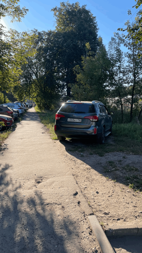 05.09.24. Домодедово, улица Виноградная 15б, парковка на тротуаре.