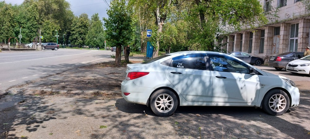 06 августа 2024 г. 08 ч 20 мин. Московская область, город Солнечногорск, микрорайон Рекинцо. Парковка на газоне при въезде на территорию Солнечногорской больницы.