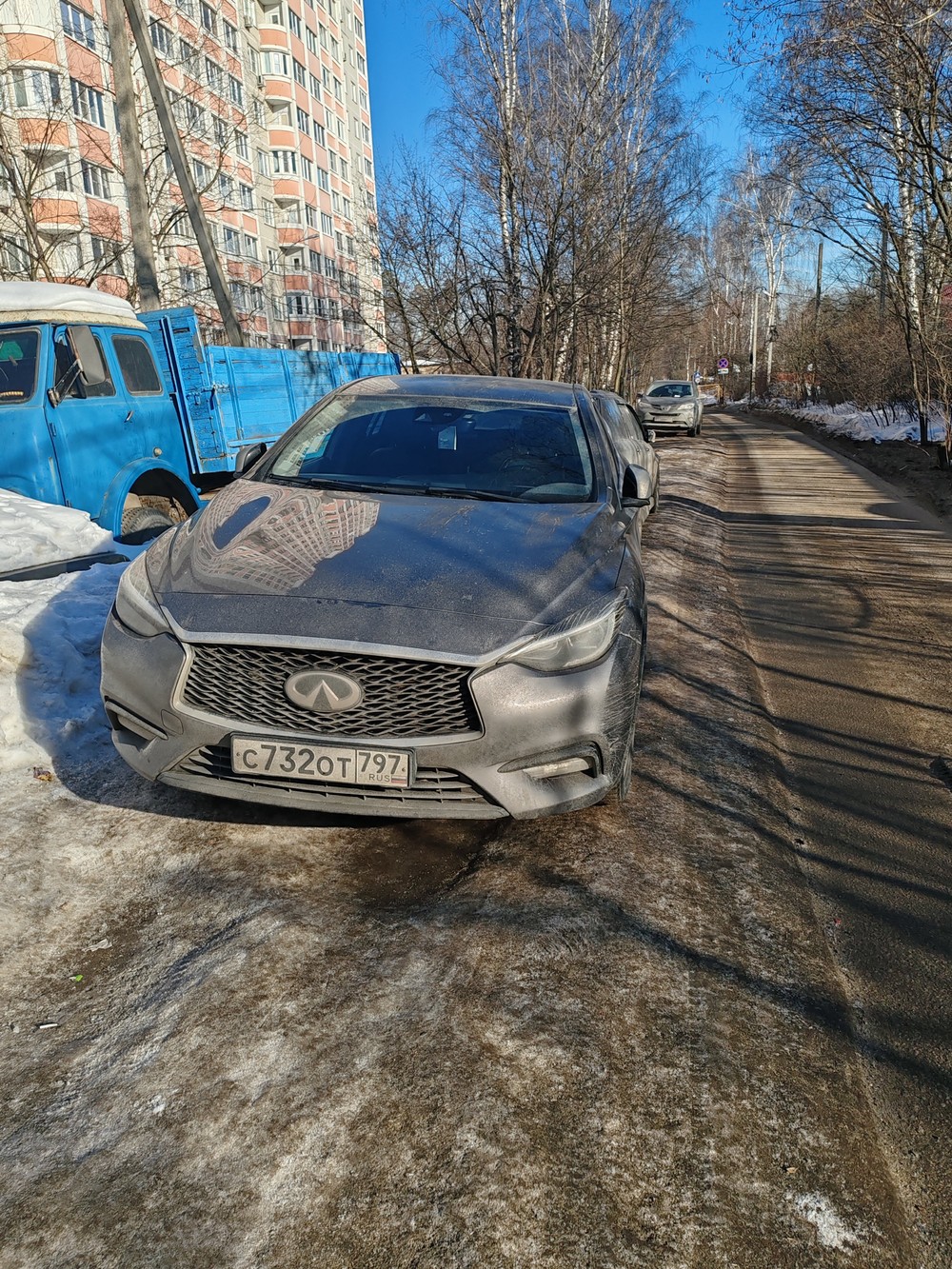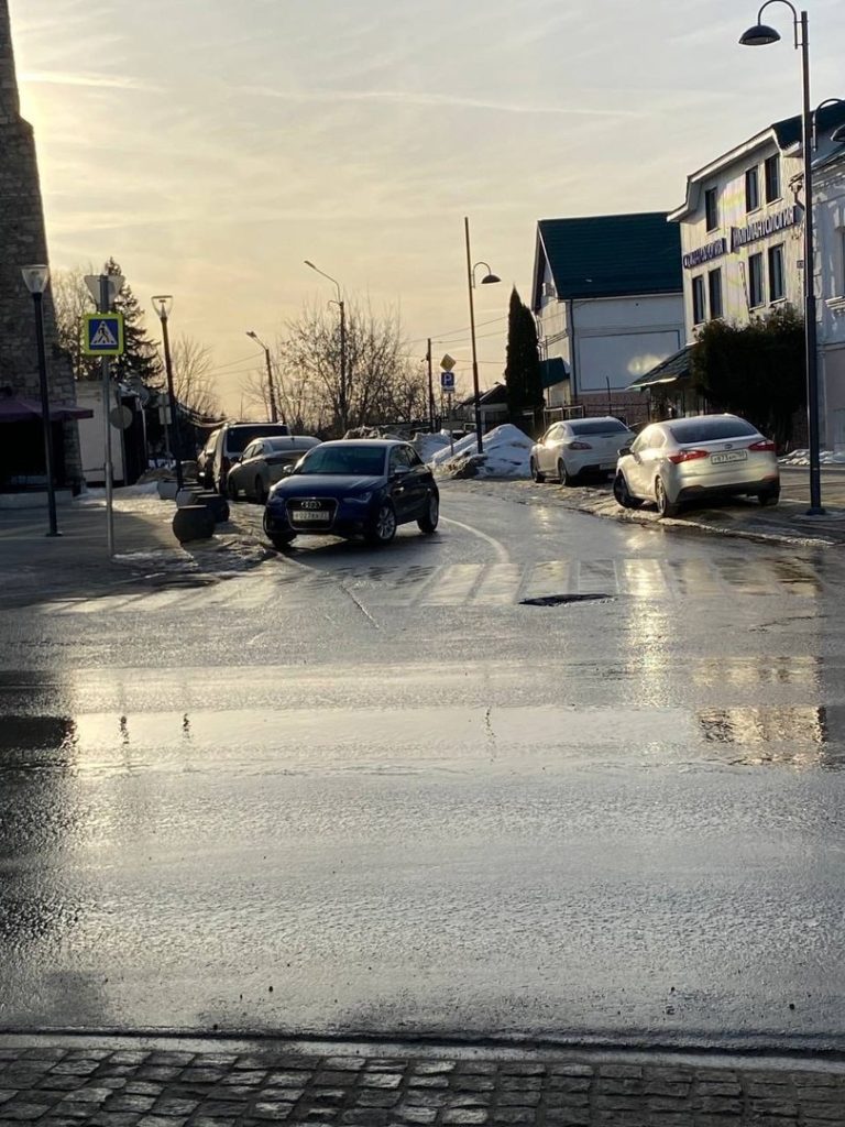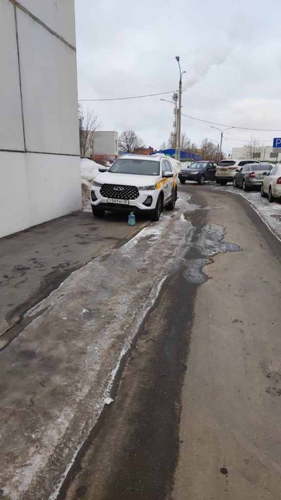 6.03.2024г. 9:36 г. Балашиха, мкр. Кучино, ул. Виноградная 1. Машины стоят на тротуаре.