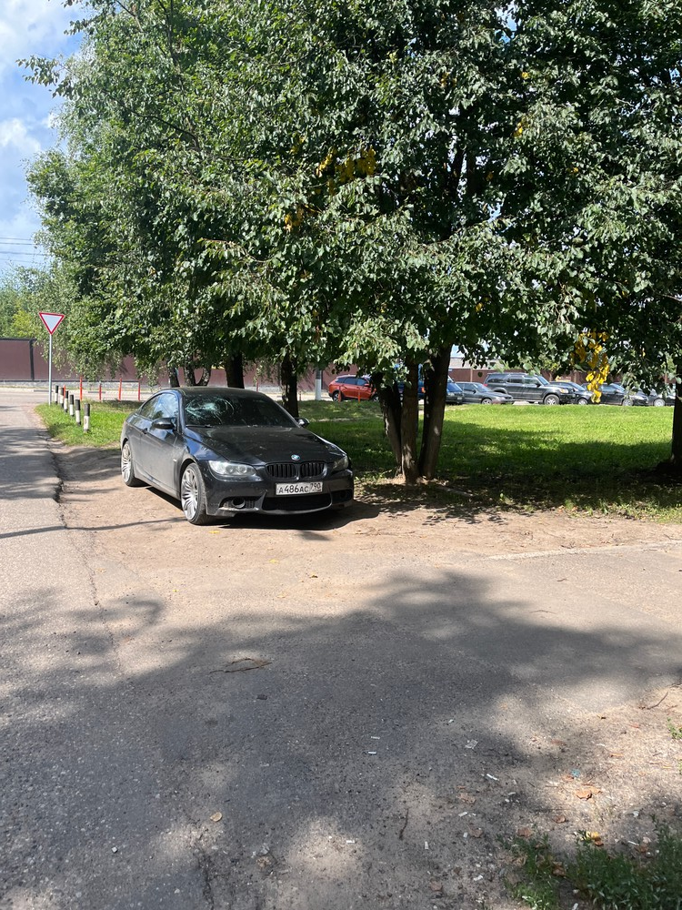 07 августа 2024 год 13 ч 03 мин Московская область город Солнечногорск микрорайон Рекинцо. Парковка на газоне при въезде на территорию Солнечногорской больницы.