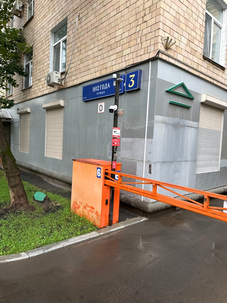 Остановка на тротуаре, стоянка на газоне. Улица 1812 года дом 3. Москва.