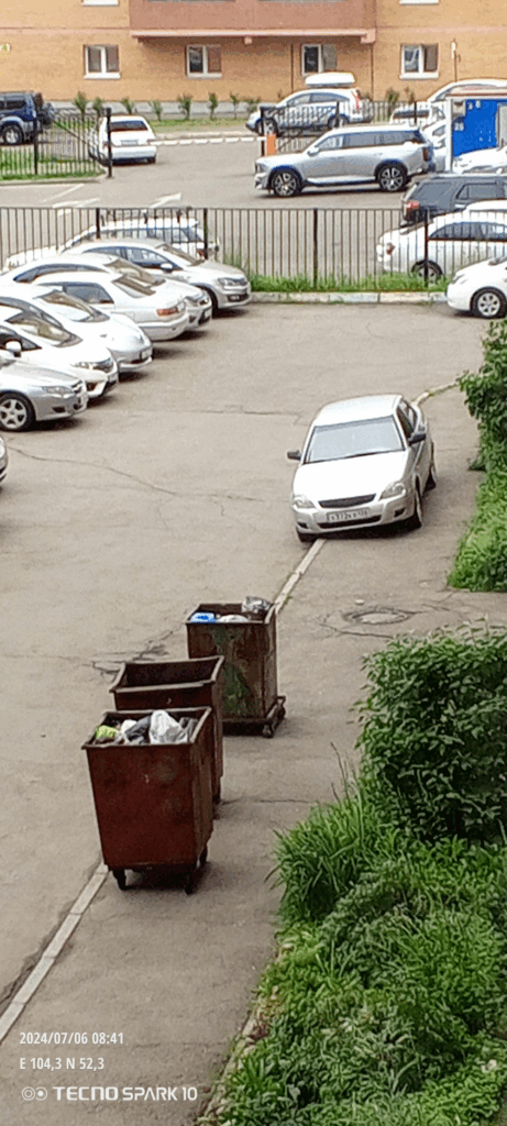 06.07.2024г, 08:41ч, г. Иркутск, мкр. Топкинский, 64. Водитель автомобиля У372КХ138 серого цвета, припарковал машину на тротуаре, создаёт пешеходам неудобства.
