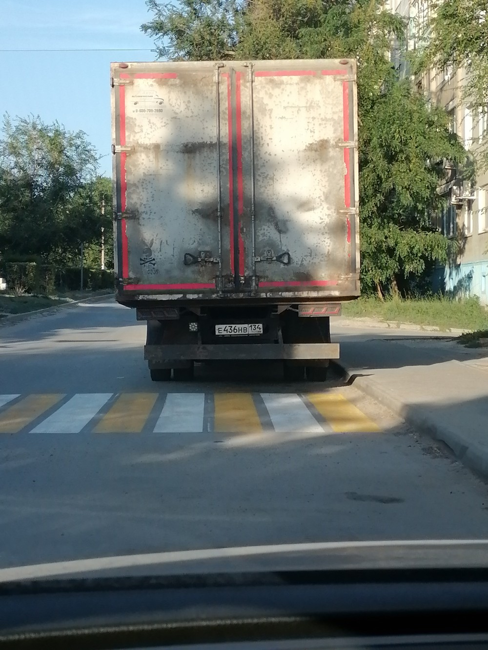 Стоит на пешеходном переходе напротив детской поликлиники ул. Чуйкова 8, рп Городище, Волгоградская область. 8.07.2024. время 18.15. гос номер е436нв134.
