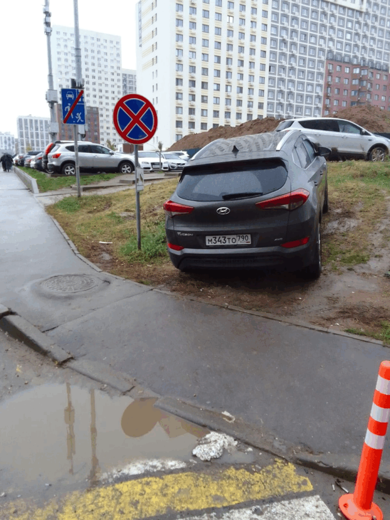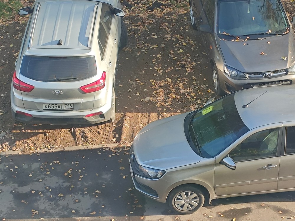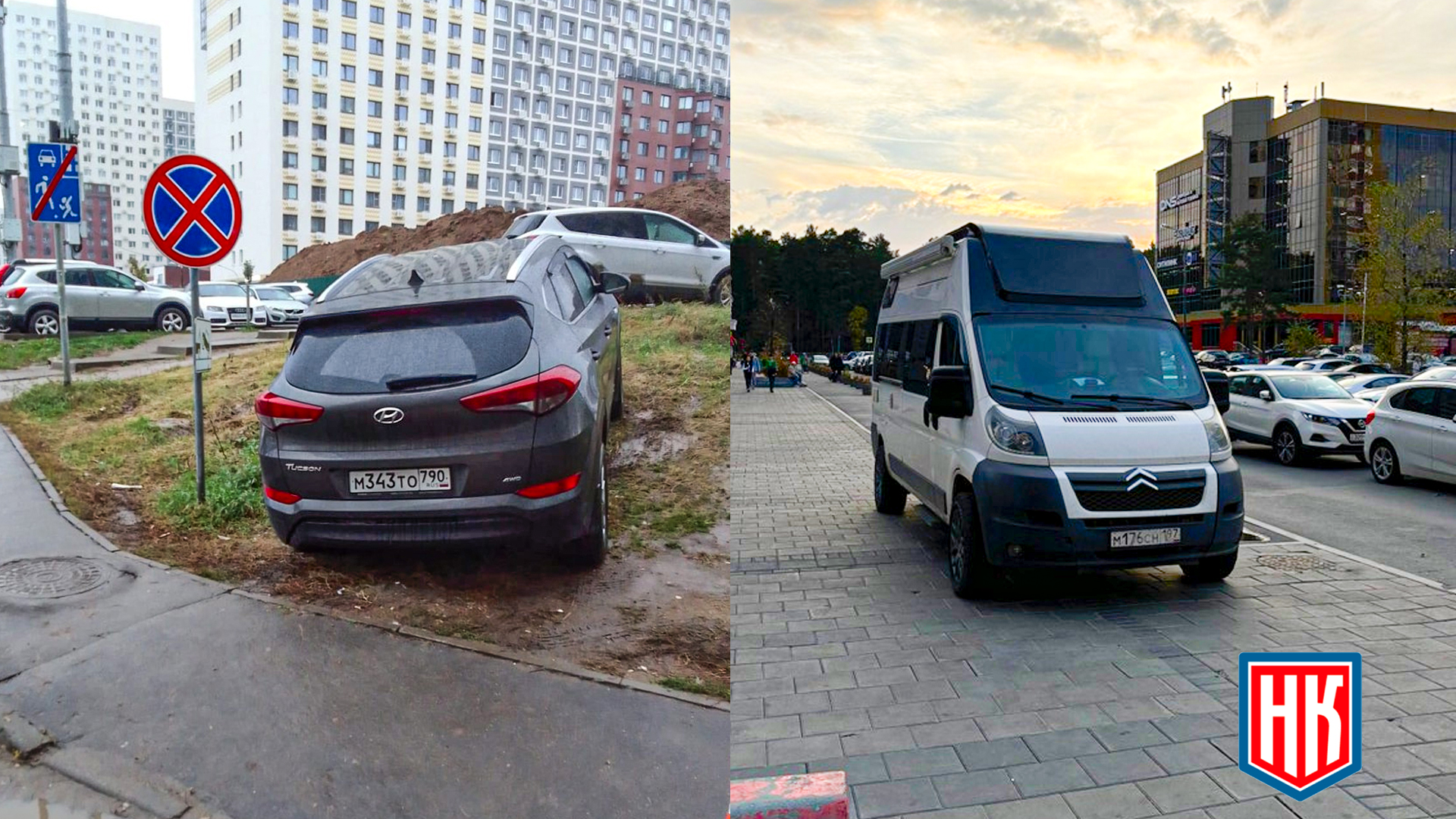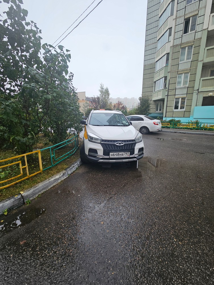08.10.2024 в 12.29. г. Подольск Московской области, мкр. Кузнечики, ул. Академика Доллежаля, д. 21. Парковка на проезжей части, парковка на газоне,