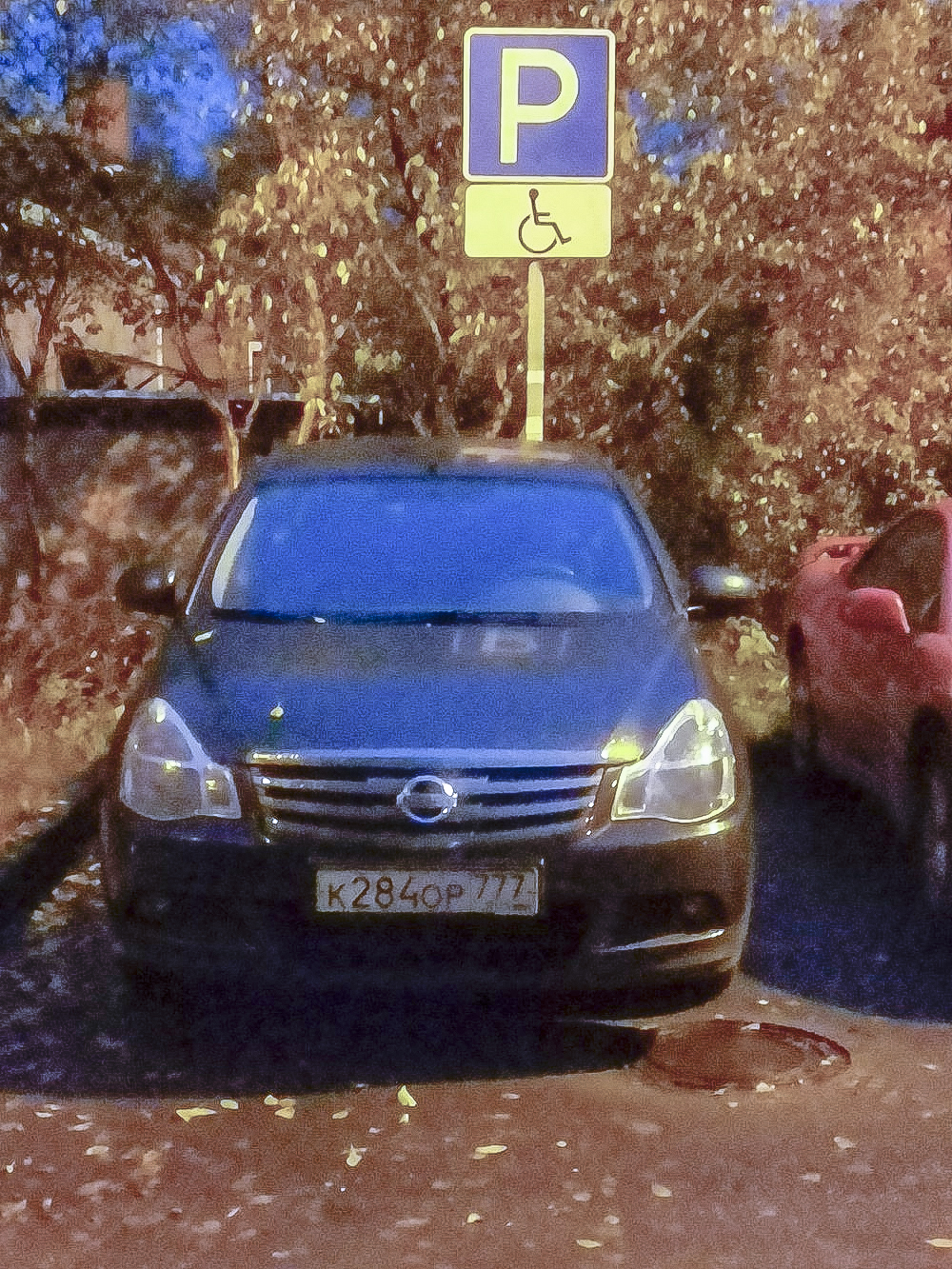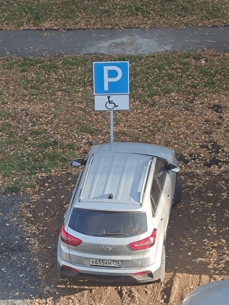 08 октября 2024 г., примерно 18:00. Московская обл., г. о. Домодедово, д. Павловское, ул. Колхозная, д. 10. Стоянка под знаком: Место для инвалидов.