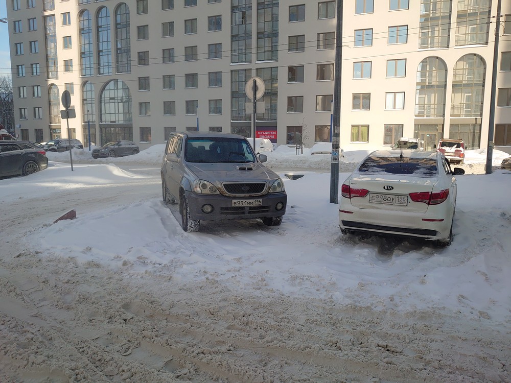 Екатеринбург, Семихатова 18, проезд по тротуару и парковка на пешеходном переходе.
