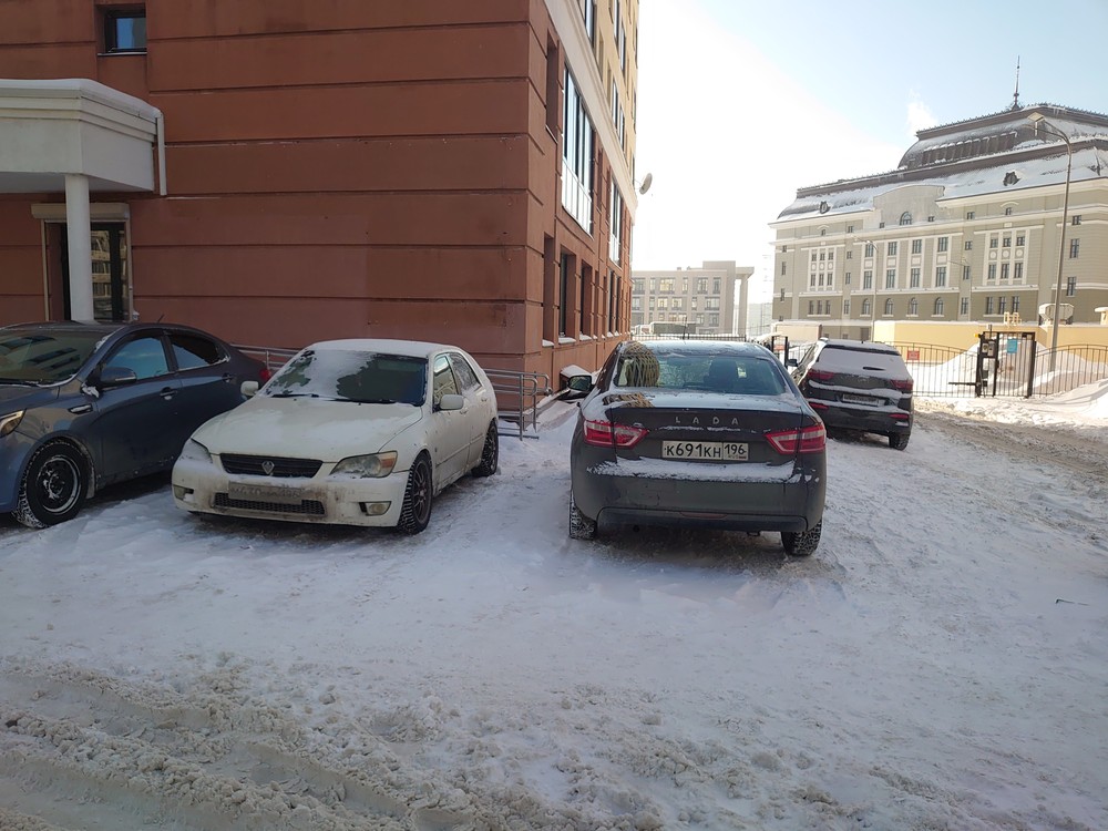 г. Верхняя Пышма, улица Александра Козицына дом 8 и 10, парковка на газоне тротуаре.
