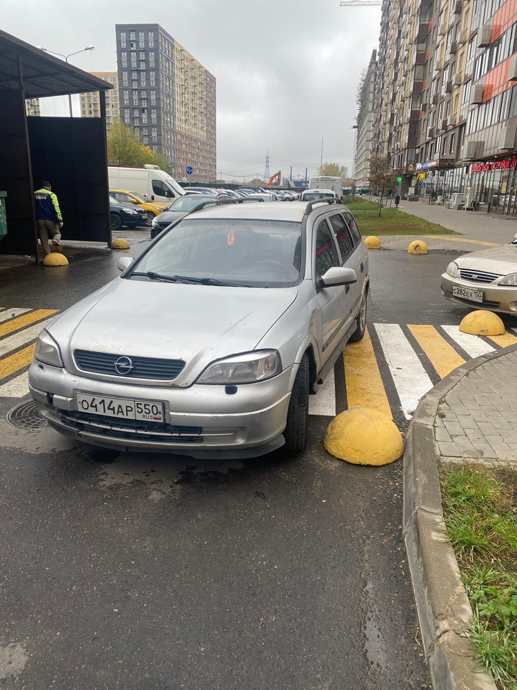 09.10.2024. Люберецкий ГО, мкр. Мирный, ул. Академика Северина, 7/1. Парковка на пешеходном переходе.