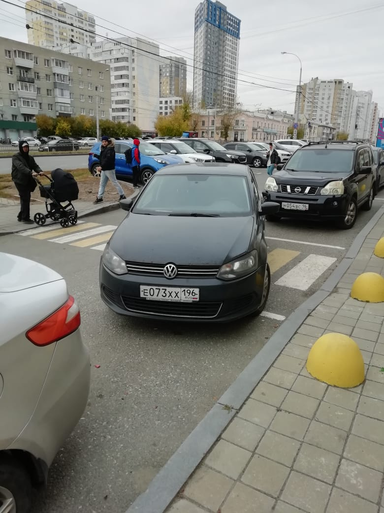 09.10.2024 г. Екатеринбург ул. Щербакова 20.Припорковался на пешеходном переходе.
