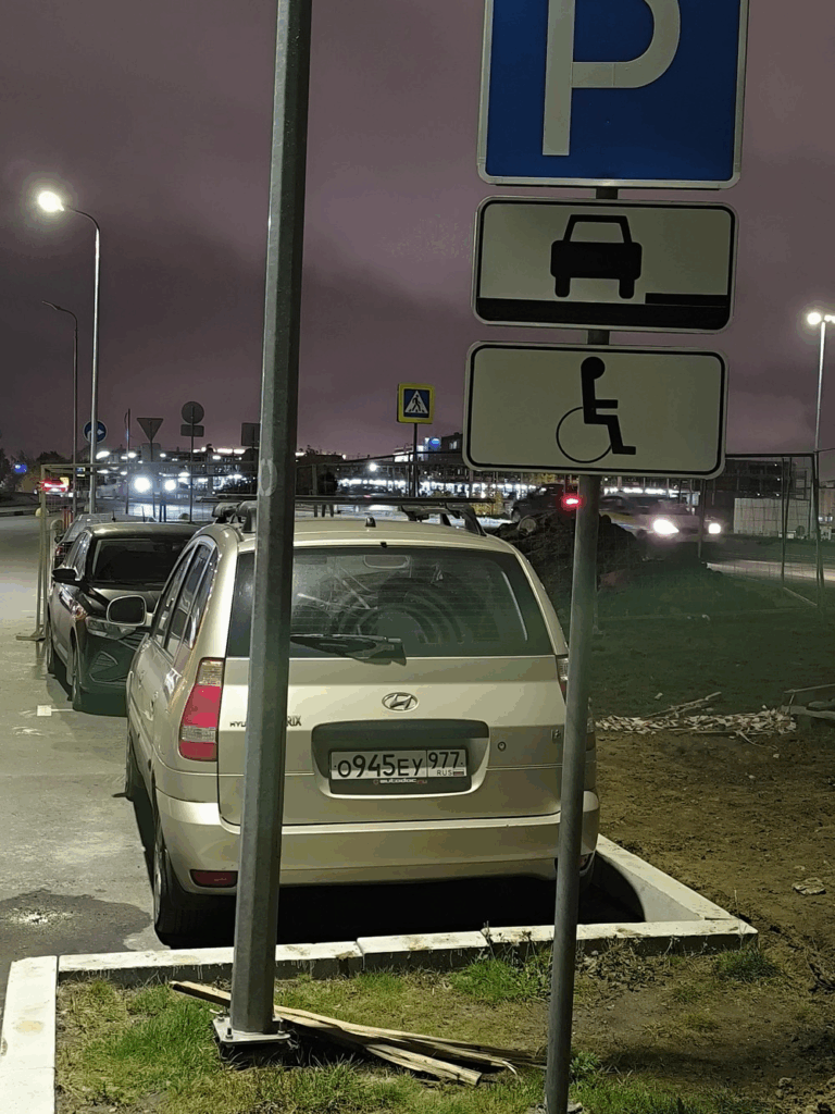09.10.2024 в 06:13. Московская область, Красногорский район, рабочий посёлок Нахабино, улица Покровская дом 8. Парковка на инвалидном месте