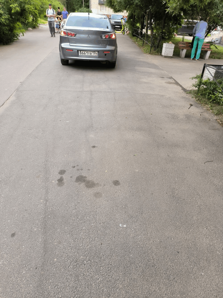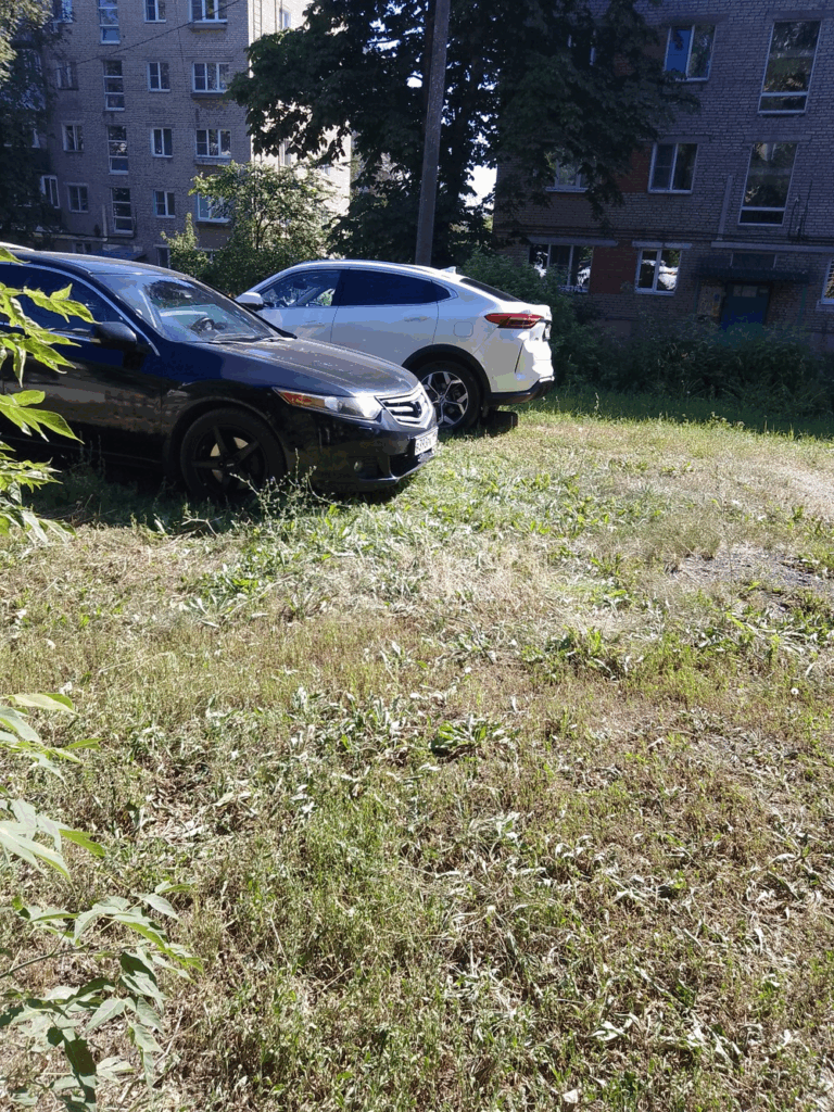 11.07.2024 года в 17:02мин по адресу: г. Тула, ул. Металлургов, 51а. На газоне постоянно припаркованы в ряд 4 автомобиля. Газон весь уже полулысый и в проплешинах. На все просьбы убрать автомобиль с газона полнейшее игнорирование. По всему дому, от первого до последнего подъезда на газоне припаркованы ТС. Доступ к детской Горке и качелям, также перекрыт ТС.