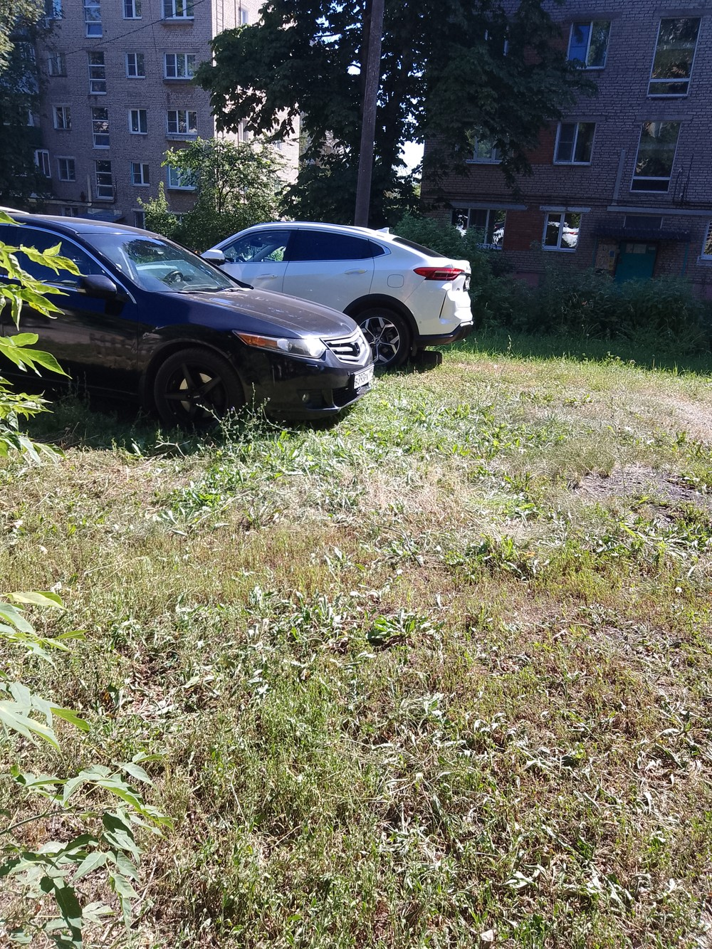 11 июля 2024 год, 08 ч 10 мин. Московская область, город Солнечногорск, микрорайон Рекинцо. Парковка на газоне при въезде на территорию Солнечногорской больницы.