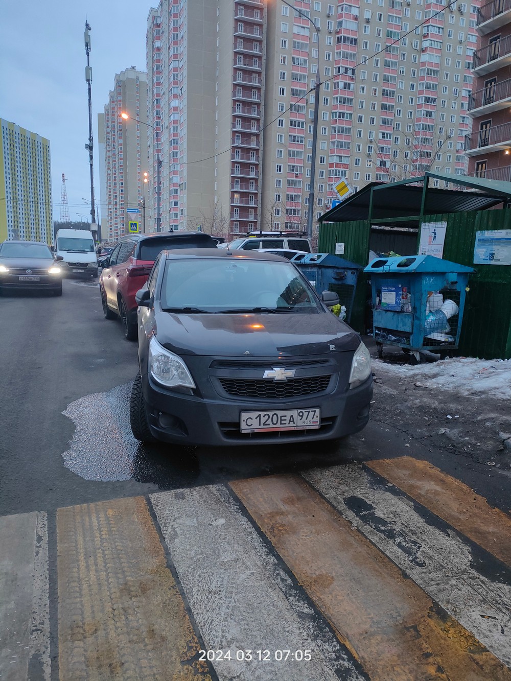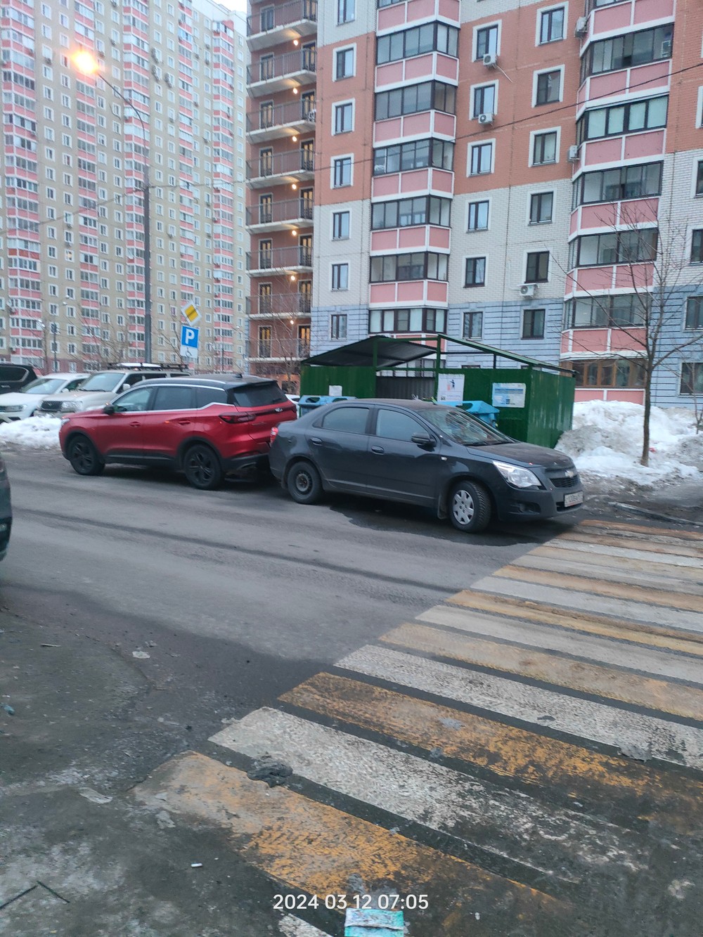 12.03.2024, Тюмень, ул. Мельникайте 116/1, парковка и стоянка на пешеходном переходе.