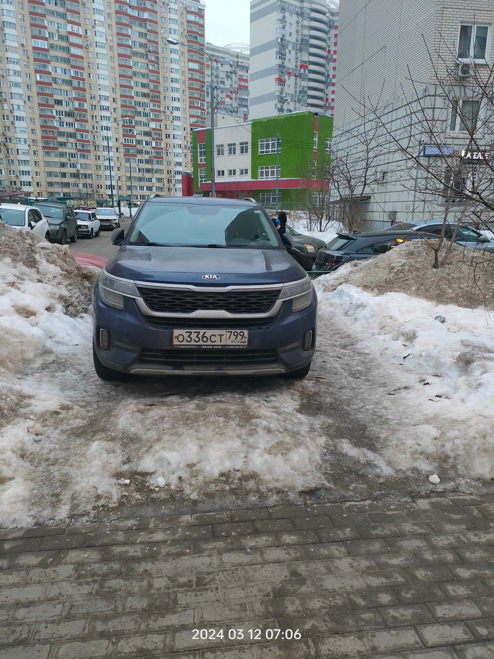 12.03.2024 в 07:06 Московская область, Красногорский район, Путилково, Спасо-Тушинский бульвар дом 7 и 70тия Победы дом 2 (внешняя сторона, тротуар) Парковка на газоне, тротуаре. Пешеходам негде ходить О336СТ799 55.873152, 37.394993 (Яндекс карты).