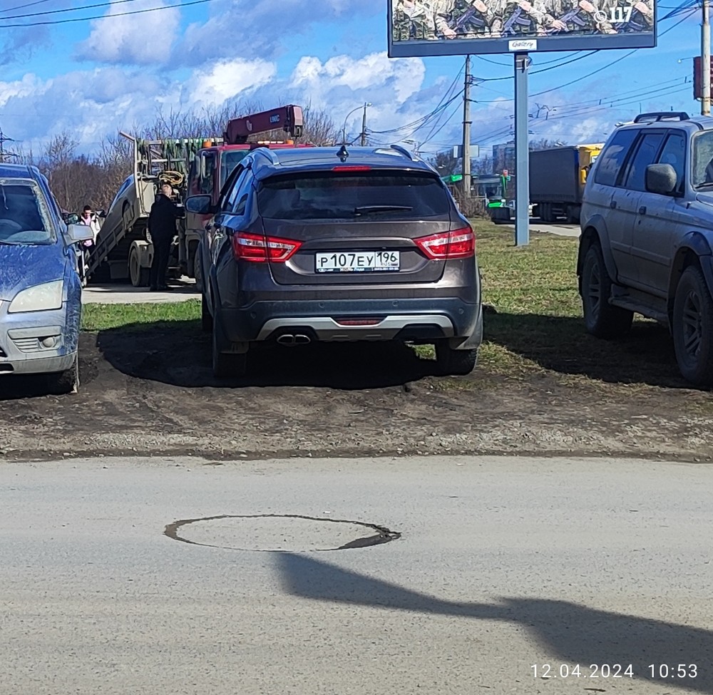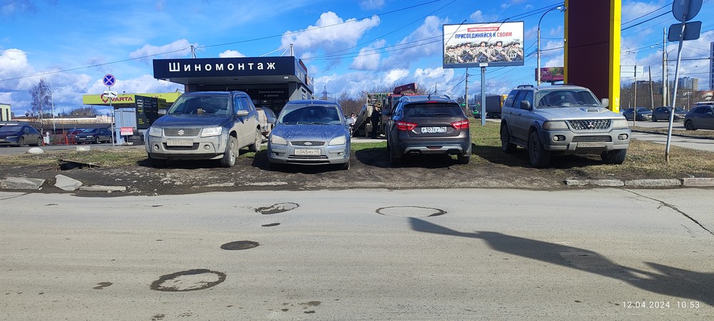 12.04.2024г. 10:53, г. Екатеринбург, пр. Космонавтов, 17д. Массовая парковка автомобилей на газоне.