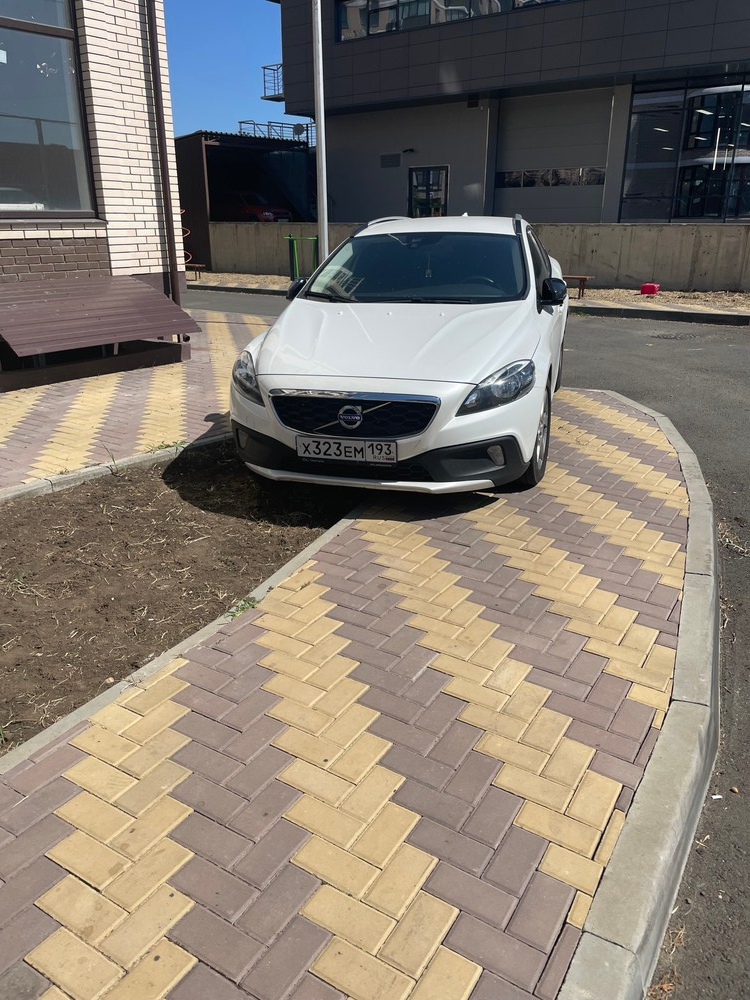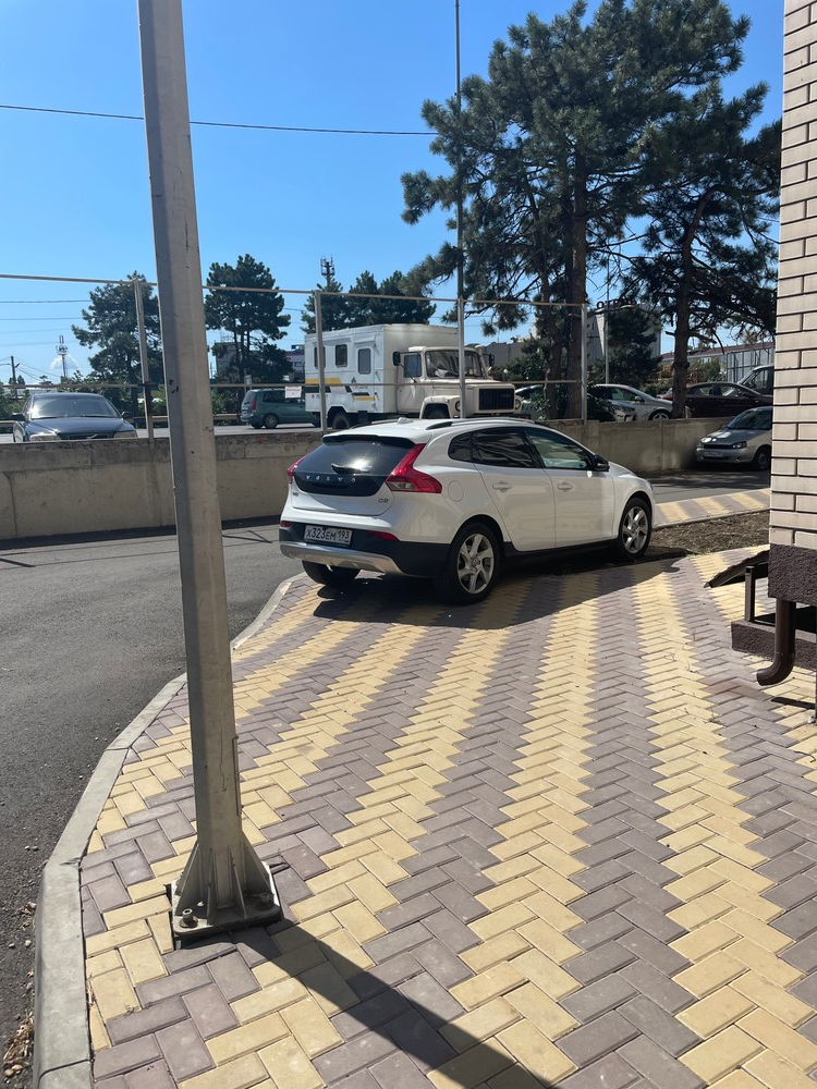 16.08.2024 Город Краснодар, улица Горячеключевская 7. Автомобиль припаркован на тротуаре и газоне.
