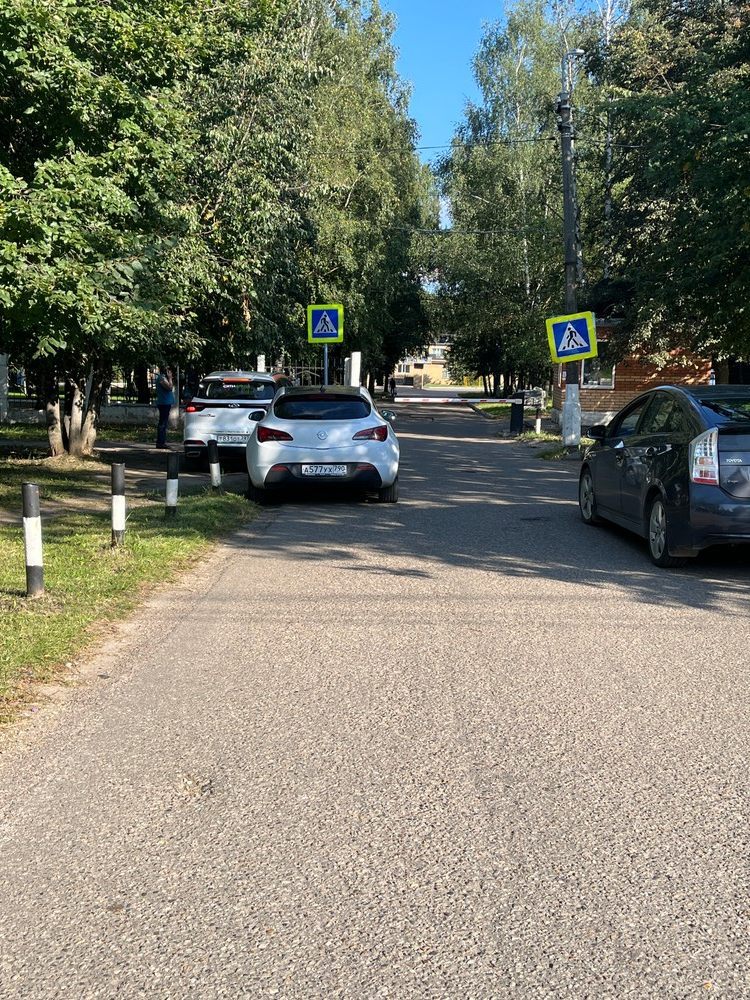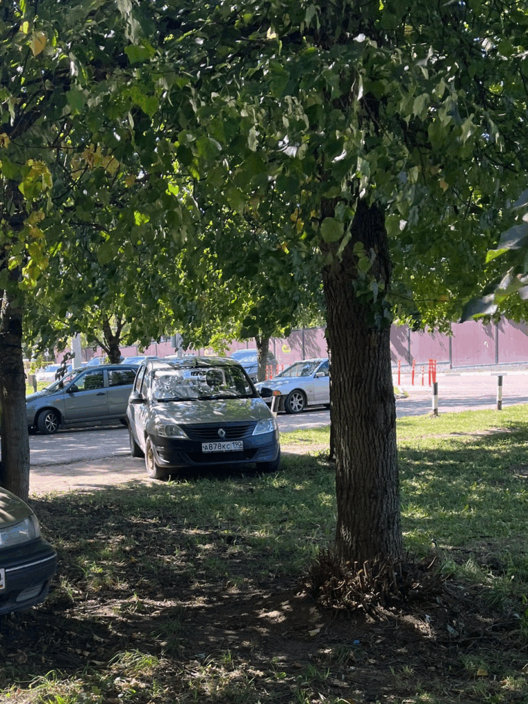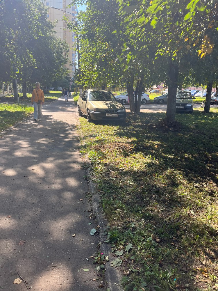16 августа 2024 г 08 ч 08 мин Московская область город Солнечногорск микрорайон Рекинцо. Парковка на газоне при въезде на территорию Солнечногорской больницы.