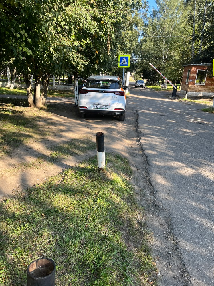 16 августа 2024 год. 16 ч 45 мин. Московская область, город Солнечногорск, микрорайон Рекинцо. Парковка на газоне при въезде на территорию Солнечногорской больницы.