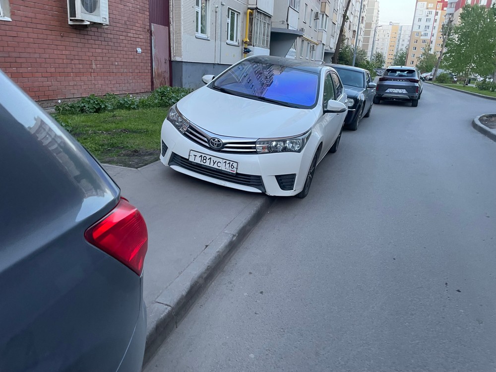 Казань, улица Меридианная 11. Паркуются на тротуаре из-за чего невозможно проехать по тротуару с детской коляской и пройти пешеходу.